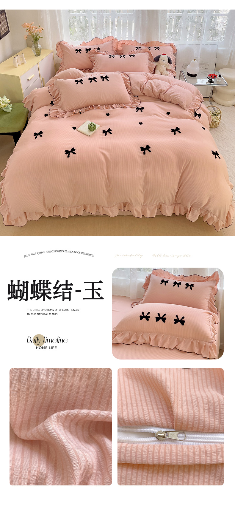商品名称:梦之岛 2024新款超柔泡泡棉皱皱纱蝴蝶结毛巾绣四件套 蝴蝶结-玉