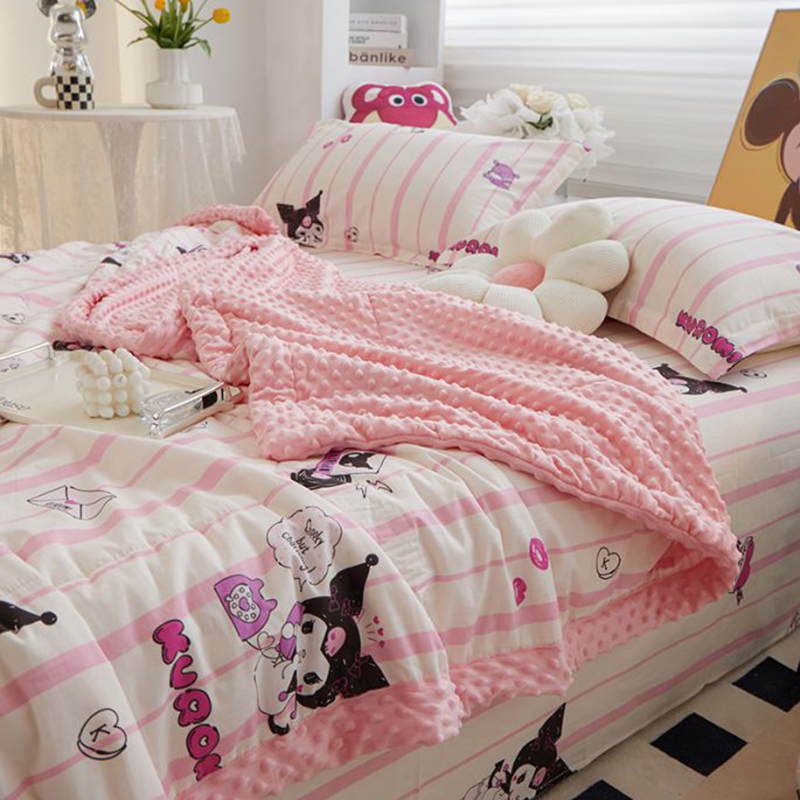 • 91家纺网 家纺一手货源 找家纺 一米阳光 2024新款卡通春夏棉加豆豆被 库洛米粉棉加豆豆被