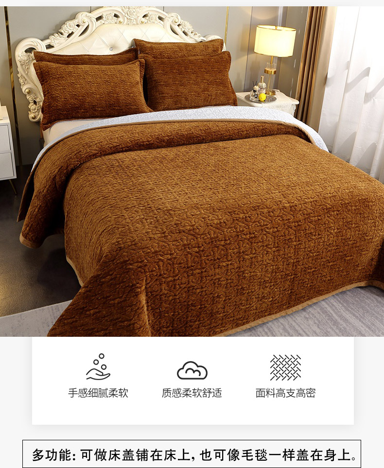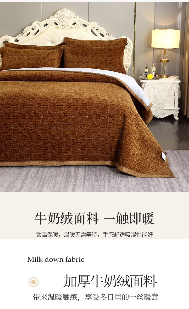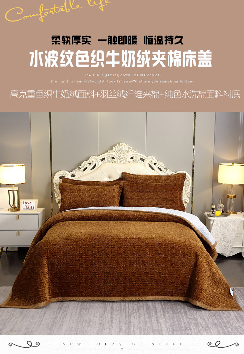 当前位置: 91家纺网 > 商品网购 > 床品套件 > 四件套 > 其它四件套 > 晶缦家纺 2024新款水波纹色织牛奶绒床盖三件套 涟漪-深咖