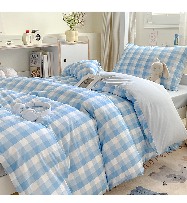 Mr.pig猪先生水洗棉 2024新款A类小清新全棉四件套纯棉床单被套床笠学生宿舍三件套床床上用品 淡蓝格子