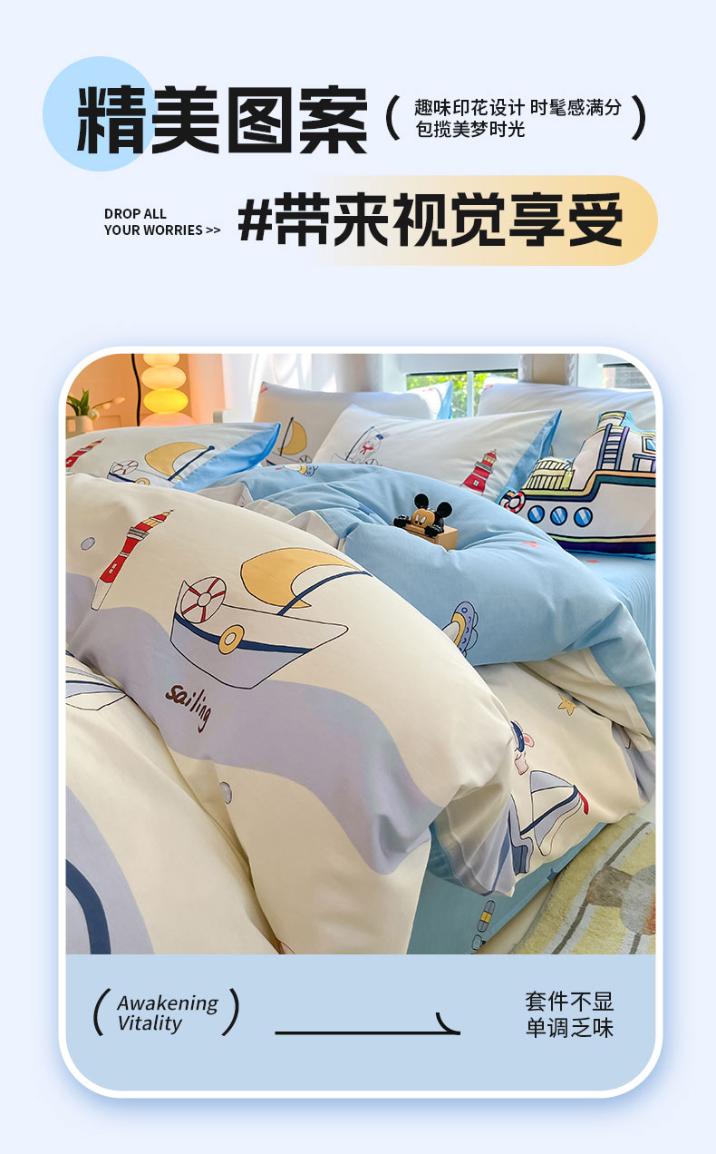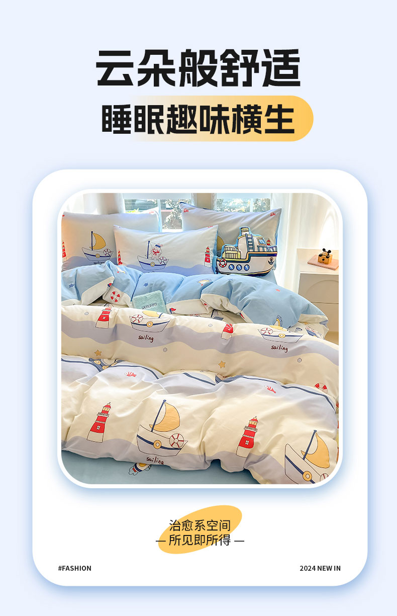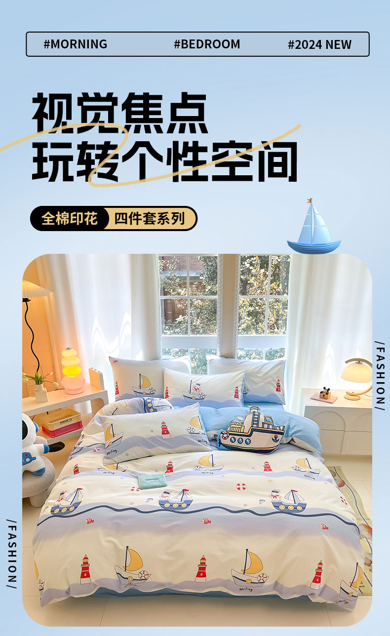 商品名称:博雅 2024新款宇航员系列全棉四件套(专版花型) 航海家