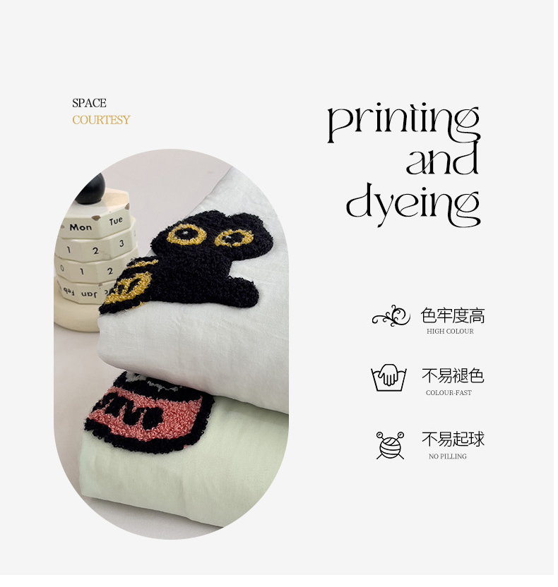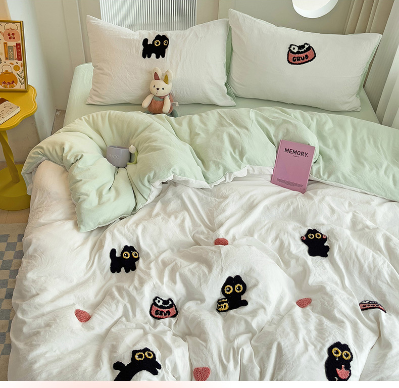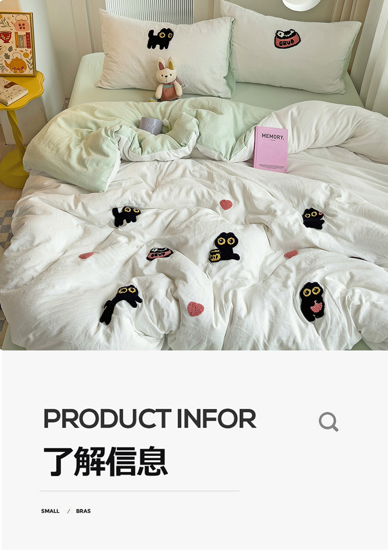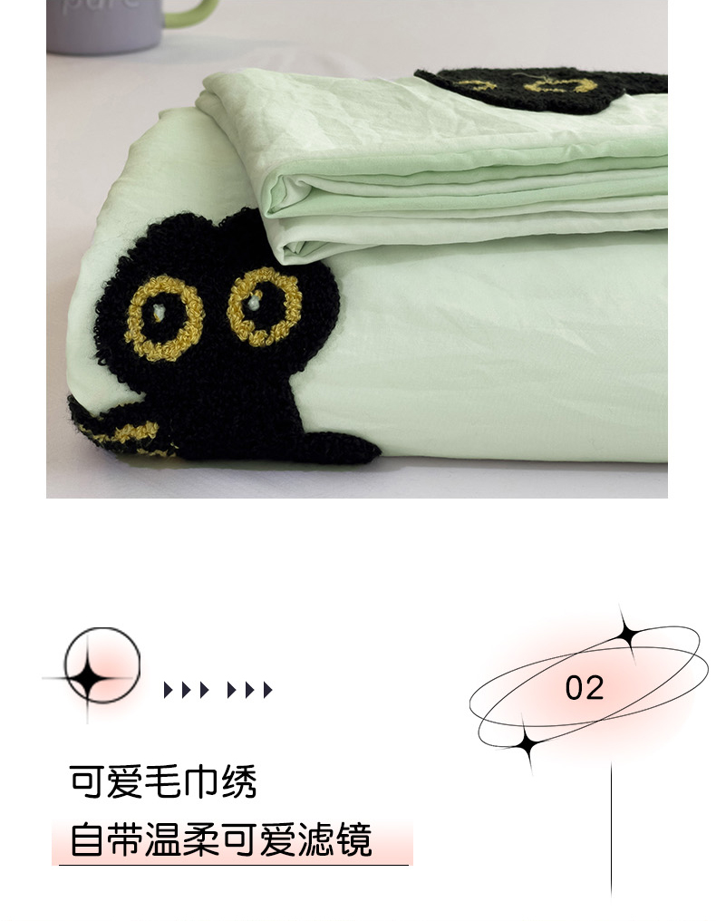 商品名称:韩巢家纺 2024新款四季通用超柔水洗棉毛巾绣单件被套-幸运猫系列(提供卖家秀 ) 幸运猫白绿