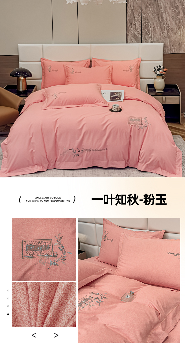 当前位置: 91家纺网 > 商品网购 > 床品套件 > 四件套 > 普通磨毛四件套 > U品汇 2024新品生态加厚长绒棉纯棉绣花全棉磨毛刺绣四件套宽边款直播 一叶知秋-粉玉