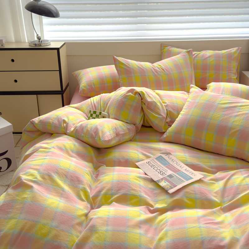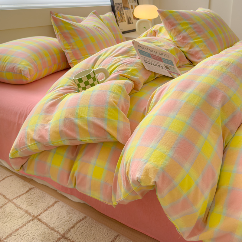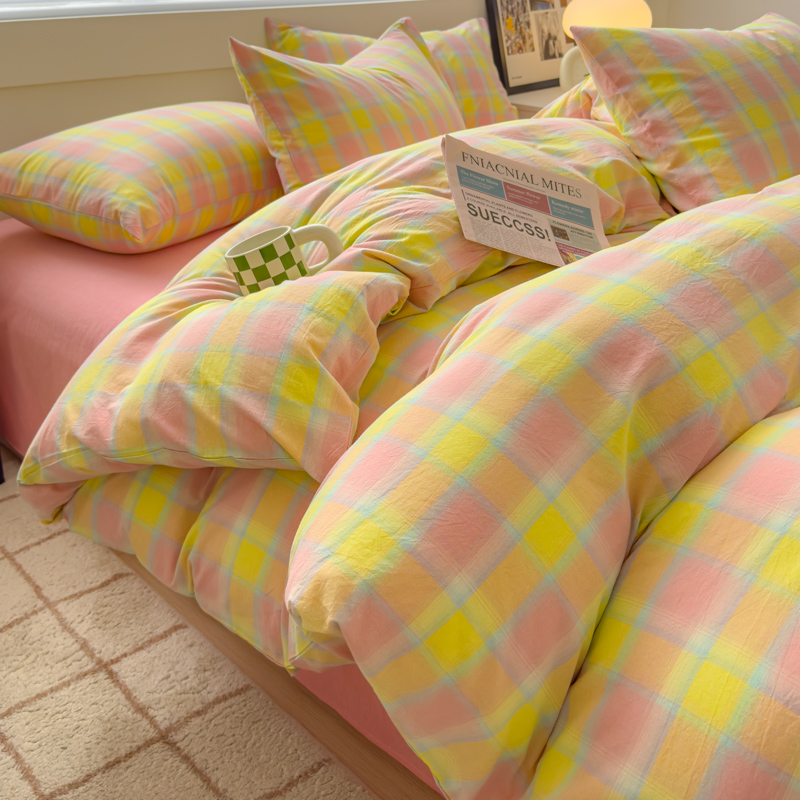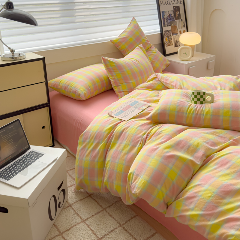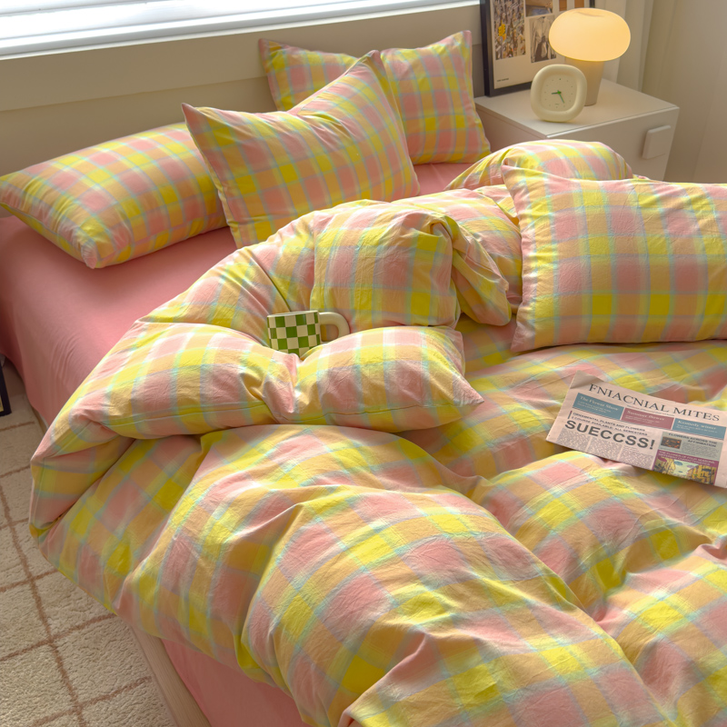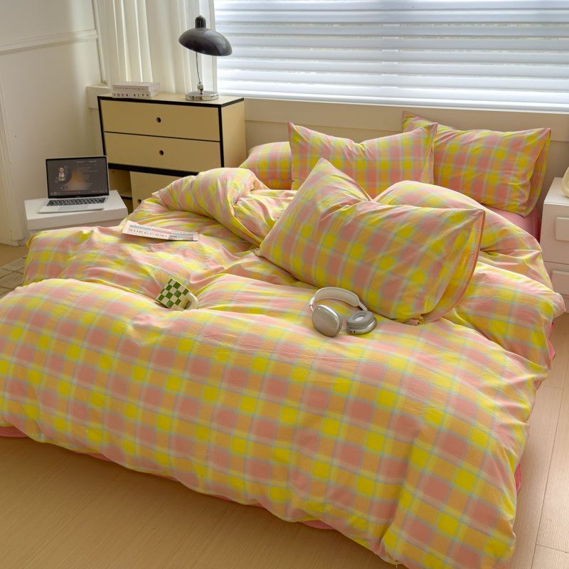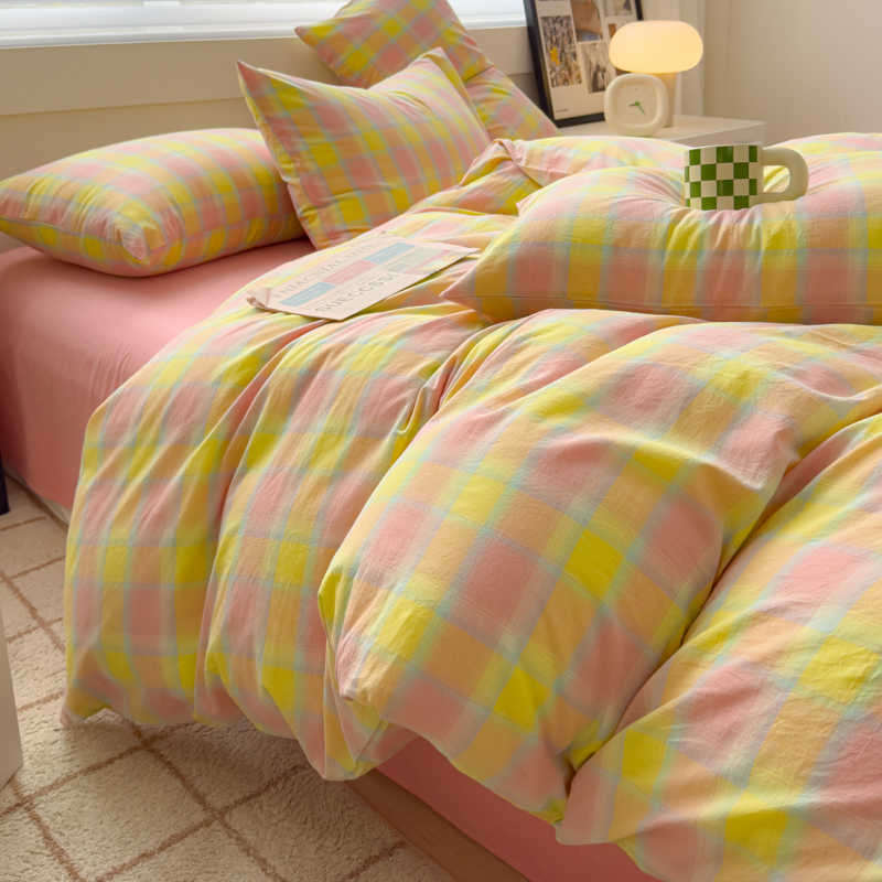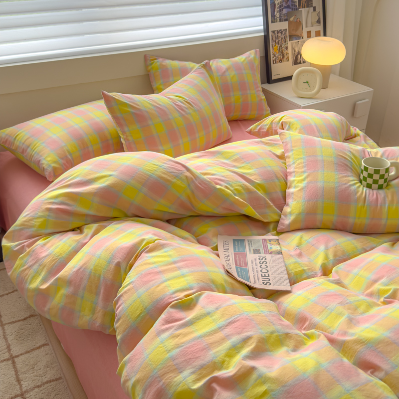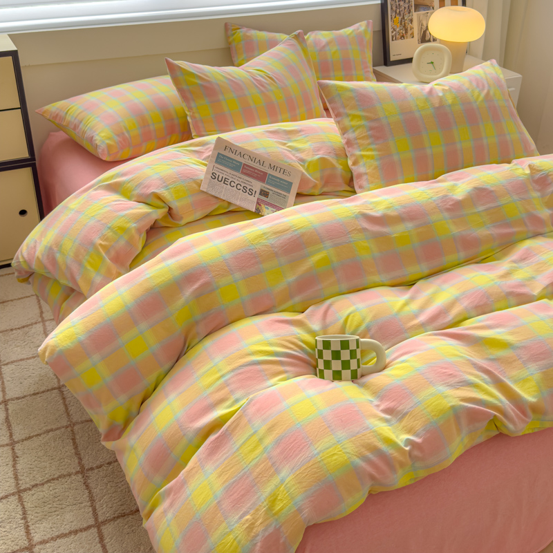 商品名称:星尚家纺 2024新款A类全棉色织水洗棉三四件套系列-单被套 佛暖-粉黄