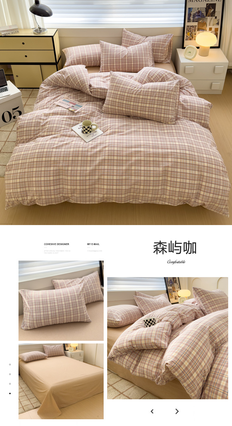 当前位置: 91家纺网 > 商品网购 > 床品套件 > 四件套 > 全棉普通四件套 > 星尚家纺 2024新款A类全棉色织水洗棉三四件套系列-四件套 森屿咖