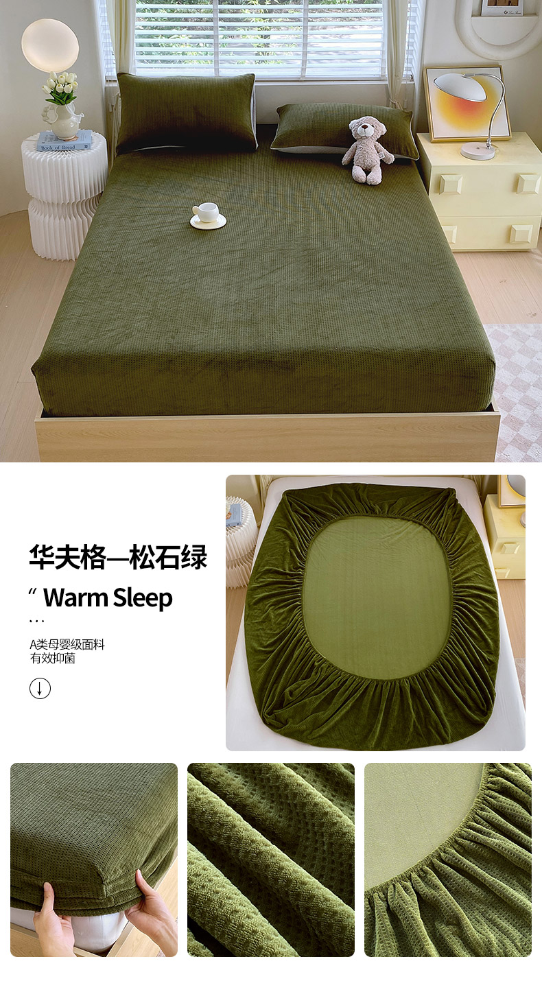 • 91家纺网 家纺一手货源 找家纺 莱米家纺 2024新款秋冬华夫格加密千鸟格牛奶绒床笠 华夫格-松石绿