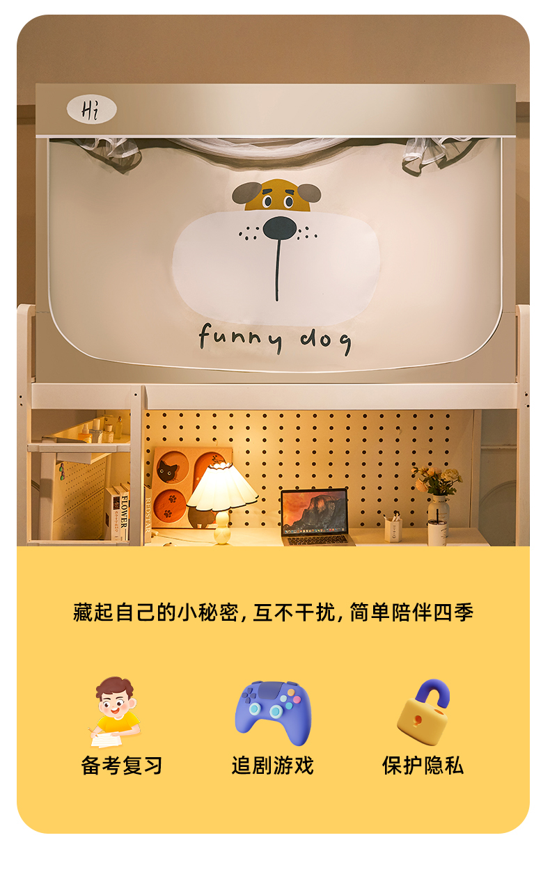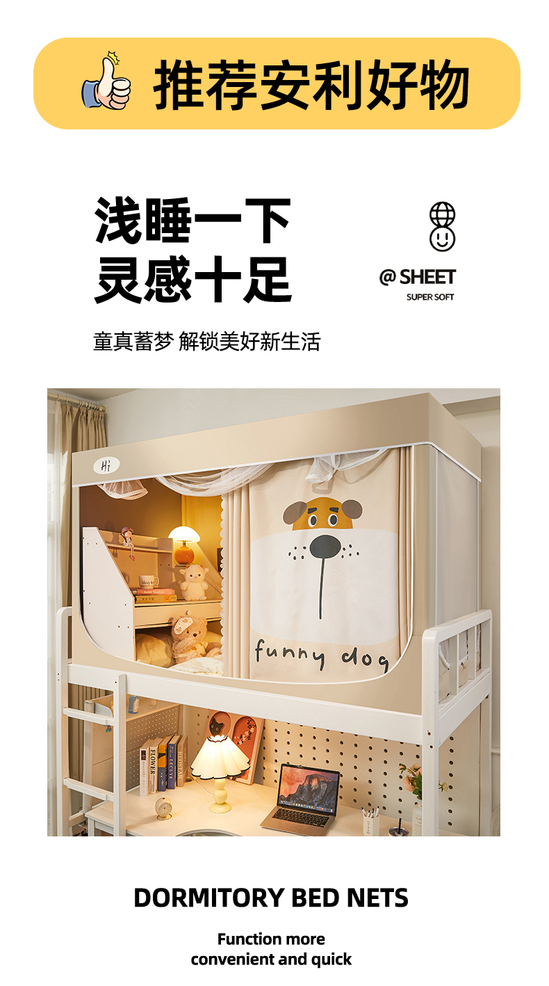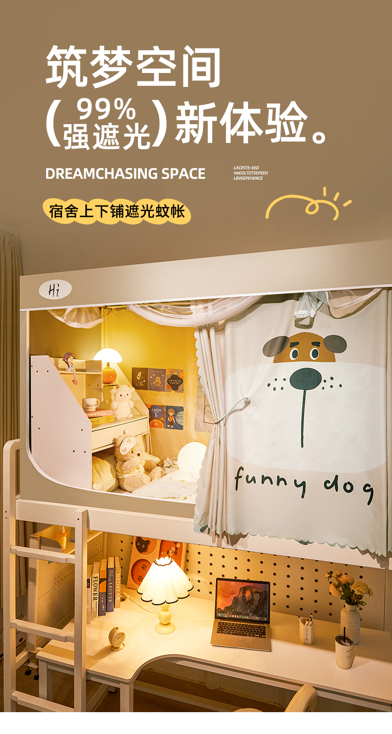 当前位置: 91家纺网 > 商品网购 > 床上用品 > 蚊帐 > 学生蚊帐 > 安金蚊帐 2024新款99%强遮光逐梦空间宿舍上下铺蚊帐 大脸狗