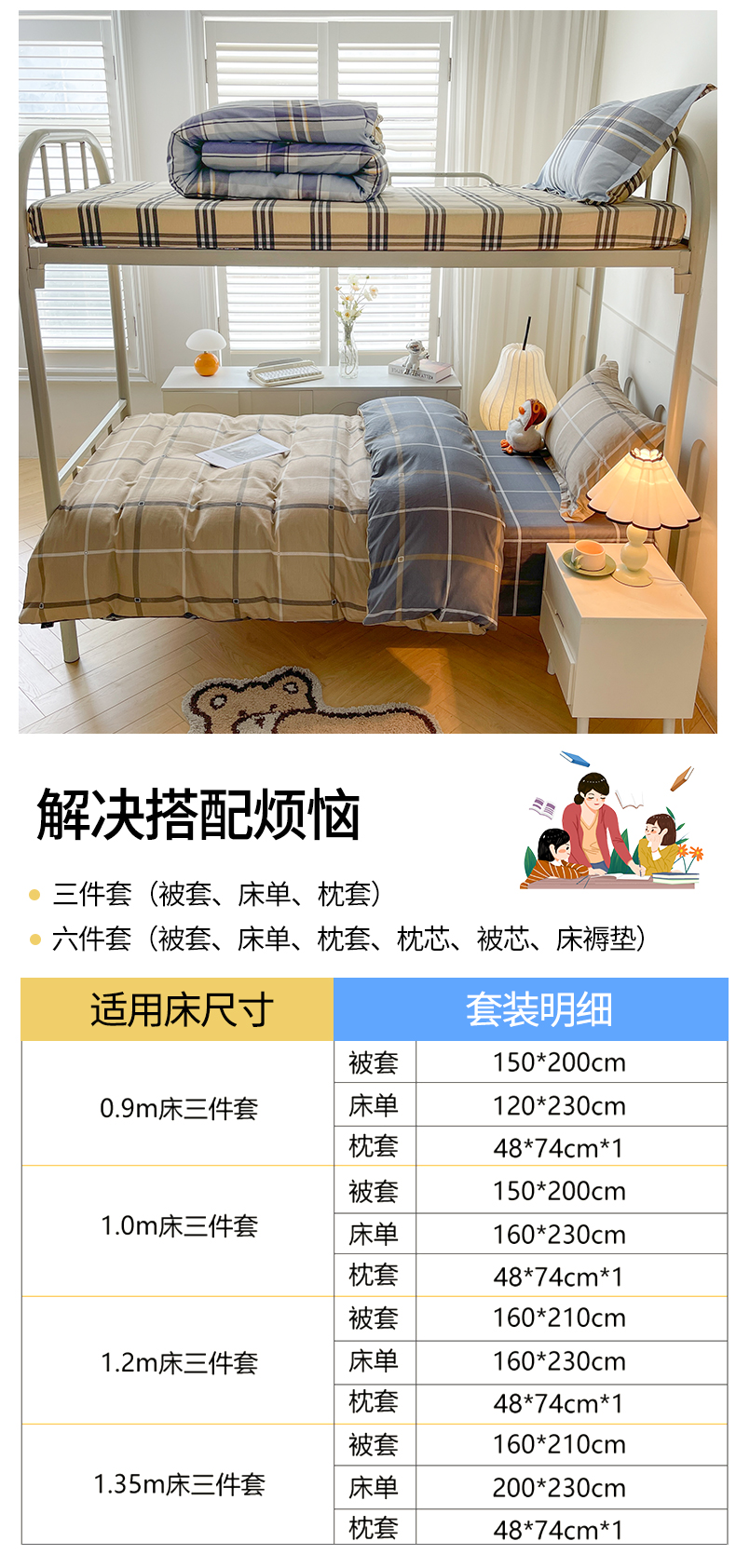 当前位置: 91家纺网 > 商品网购 > 床品套件 > 四件套 > 全棉普通四件套 > 2025新款全棉印花12868学生宿舍床三件套被芯床垫枕芯上下铺六件套 乐享时光-咖