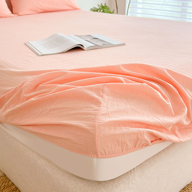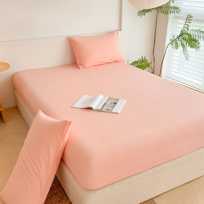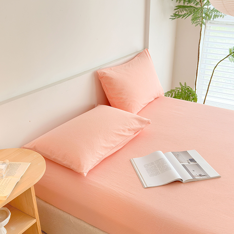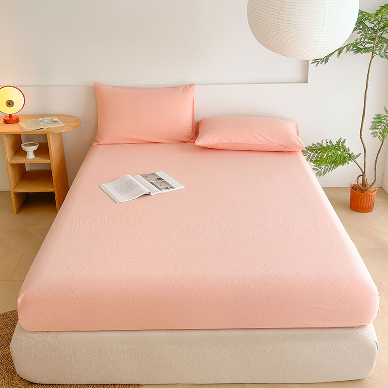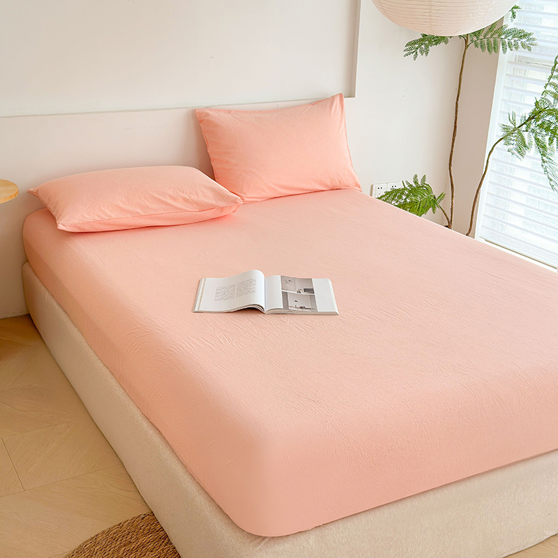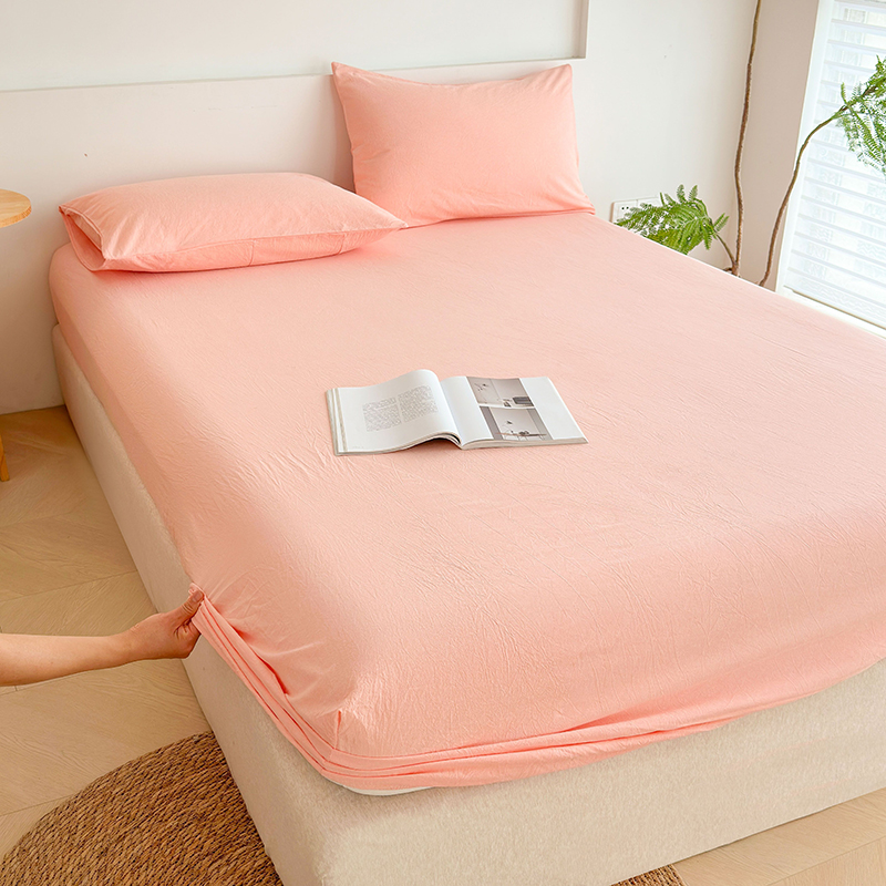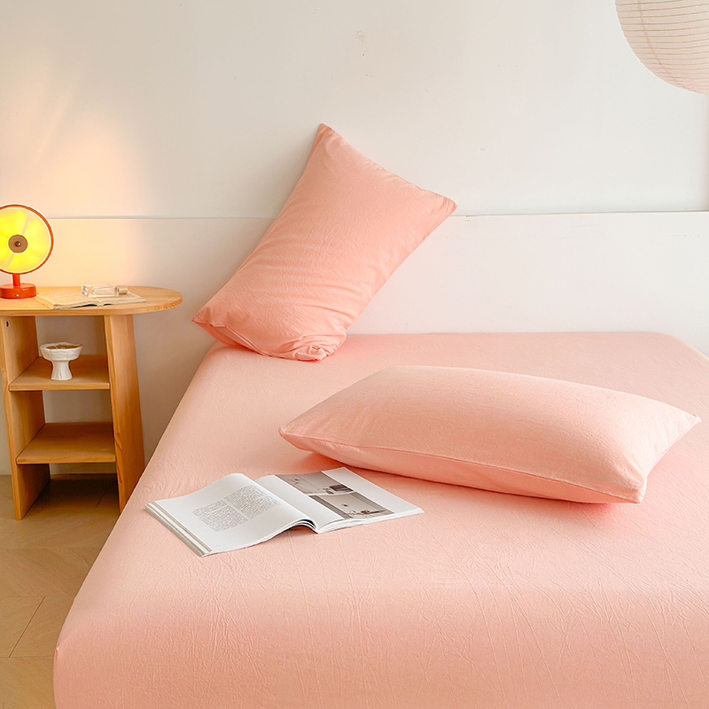 商品名称:慕莎家纺 2024新款亲肤水洗色织床笠三件套 奶油粉