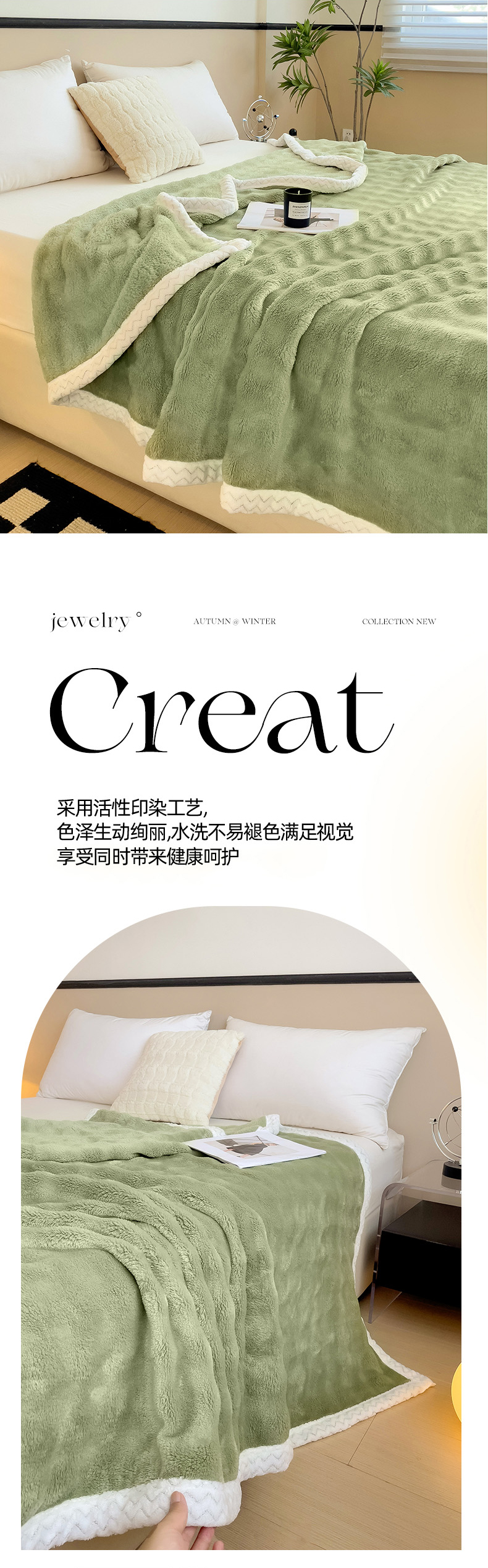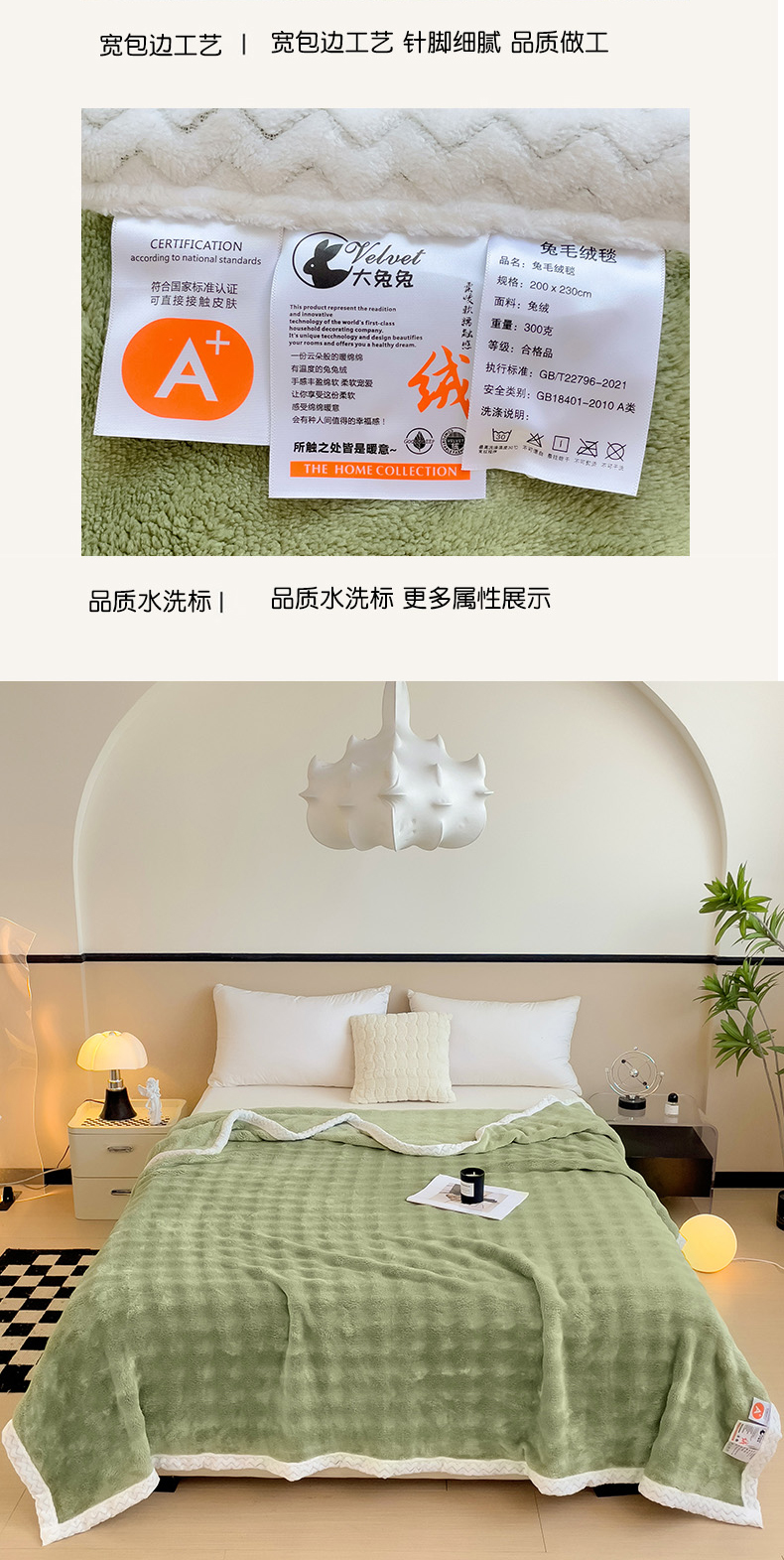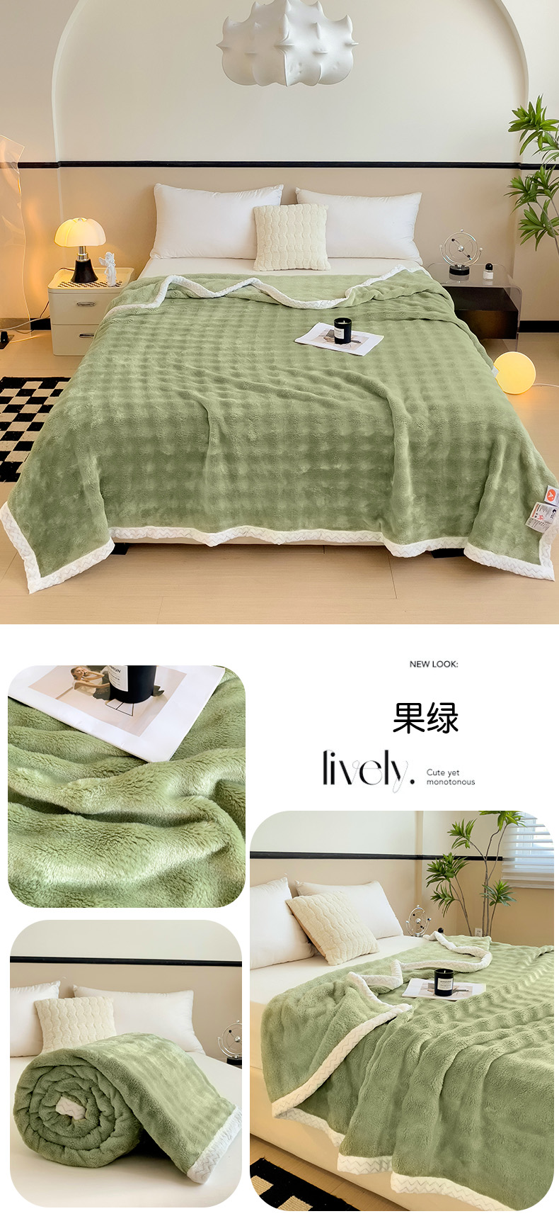 商品名称:佳居缘 2024新款亲肤舒适纯色兔毛绒毯毛毯毯子 果绿