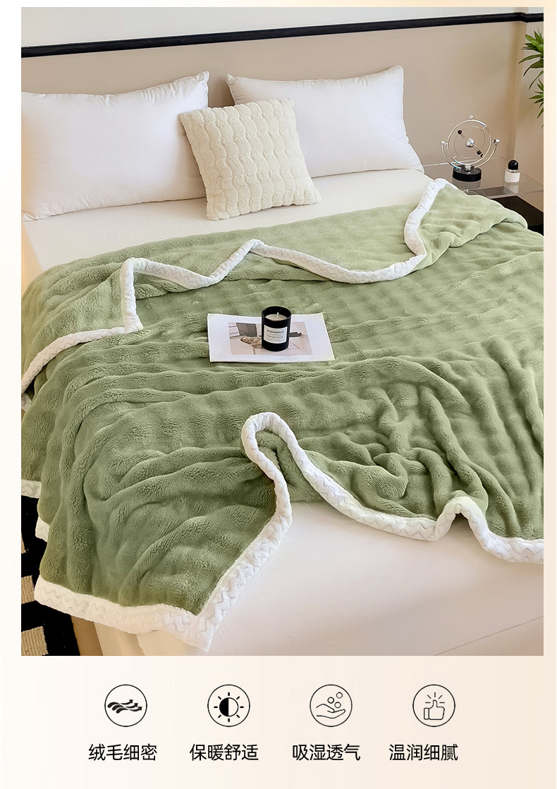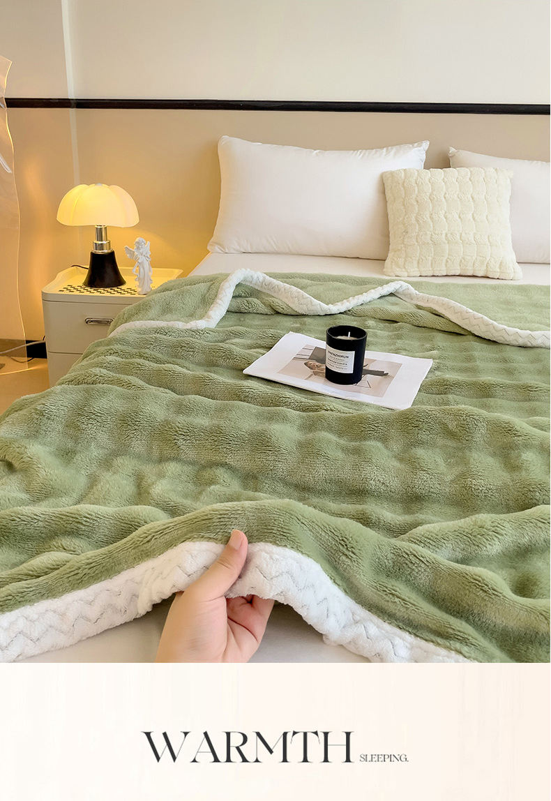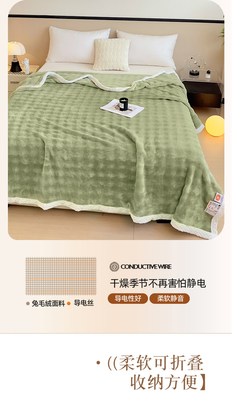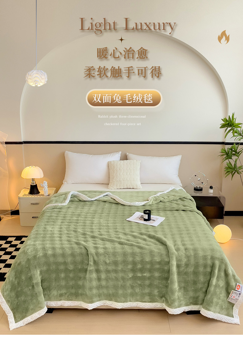 佳居缘 2024新款亲肤舒适纯色兔毛绒毯毛毯毯子 果绿