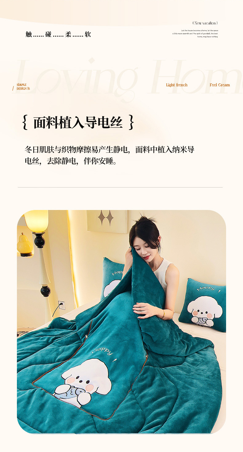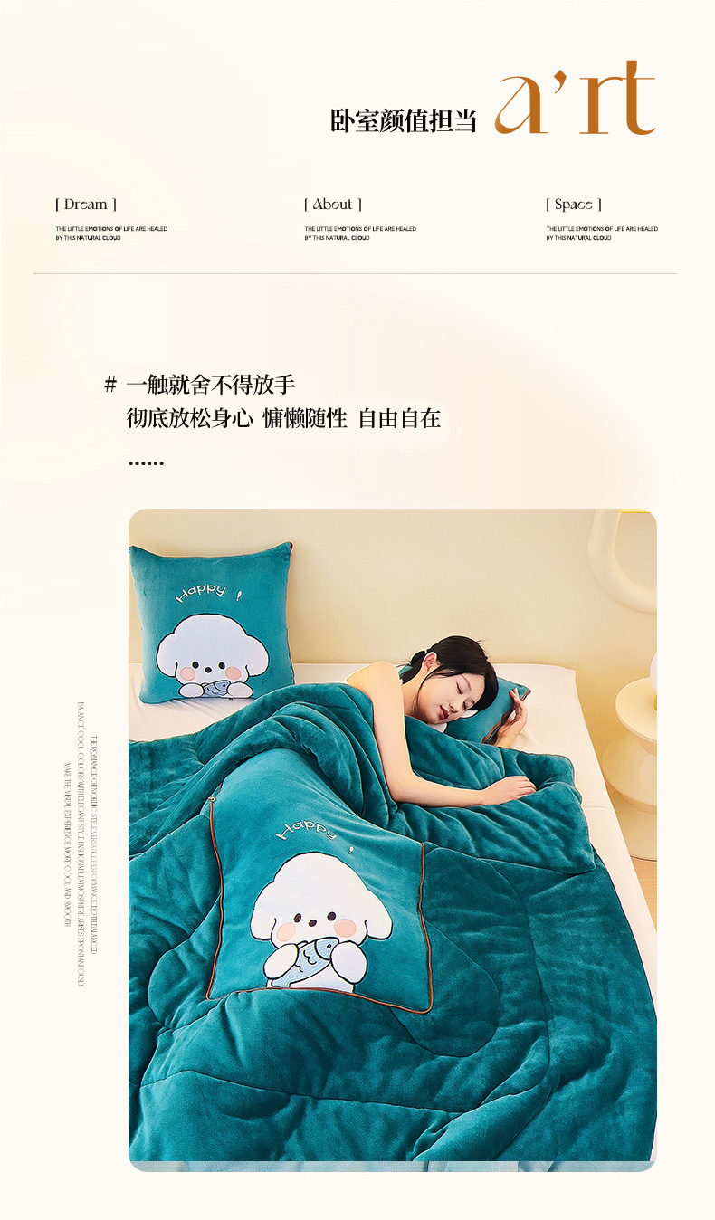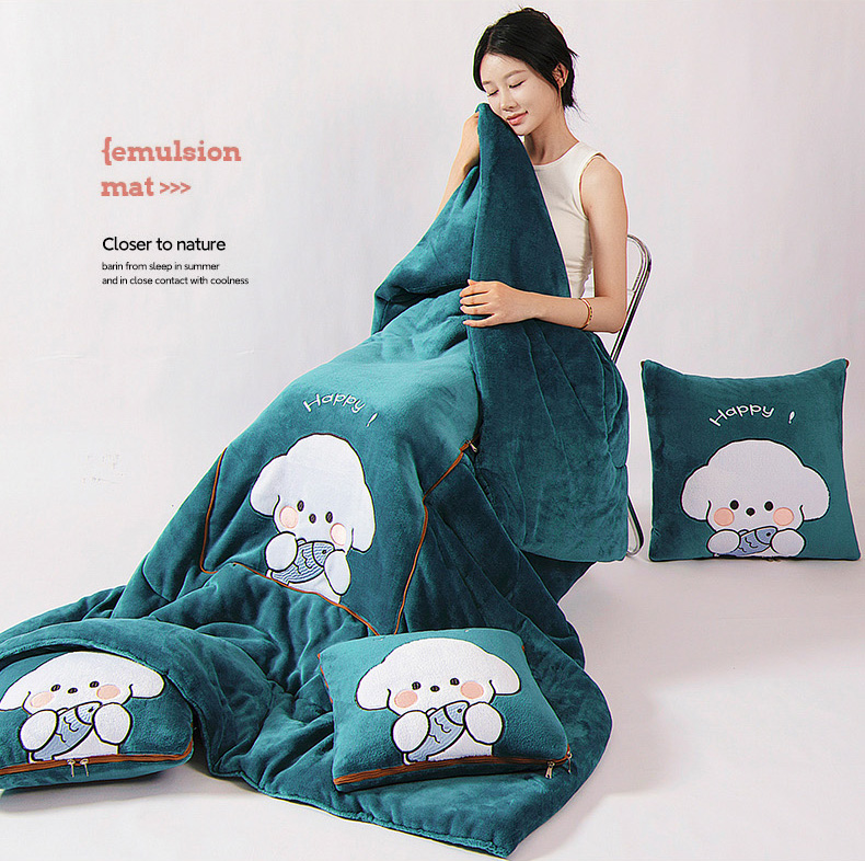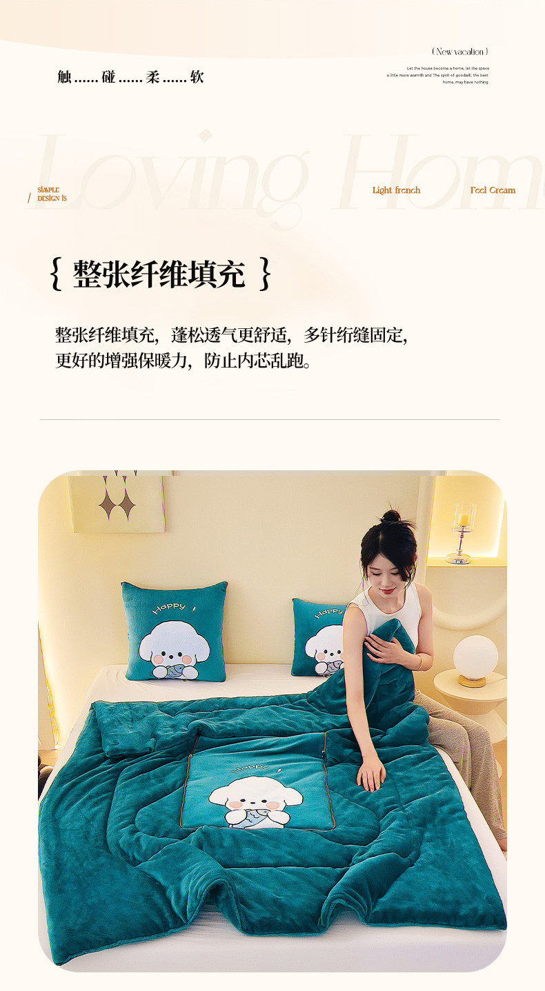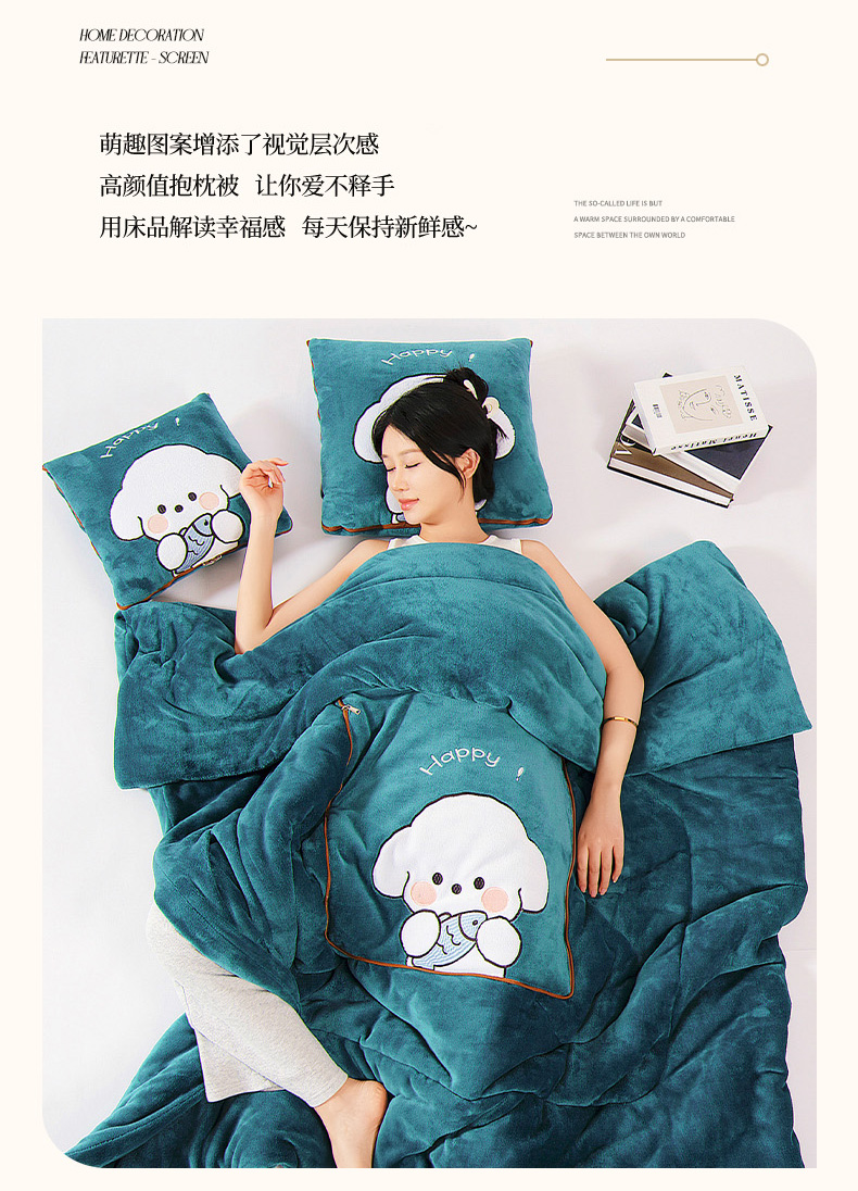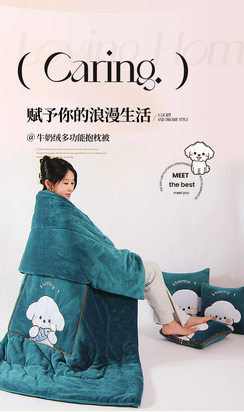 阳光依佰抱枕被 2024秋冬新款牛奶绒可萌狗多功能抱枕被 可萌狗-孔雀绿