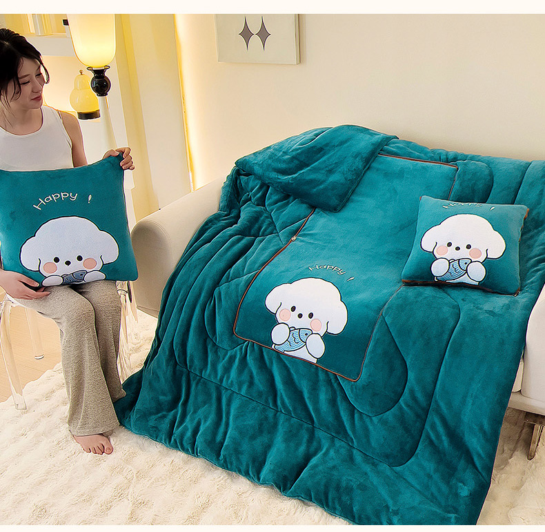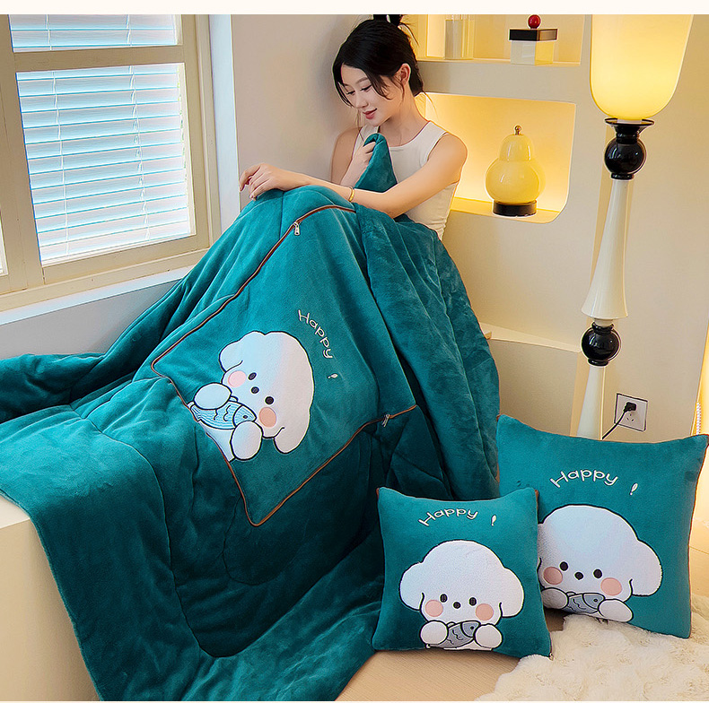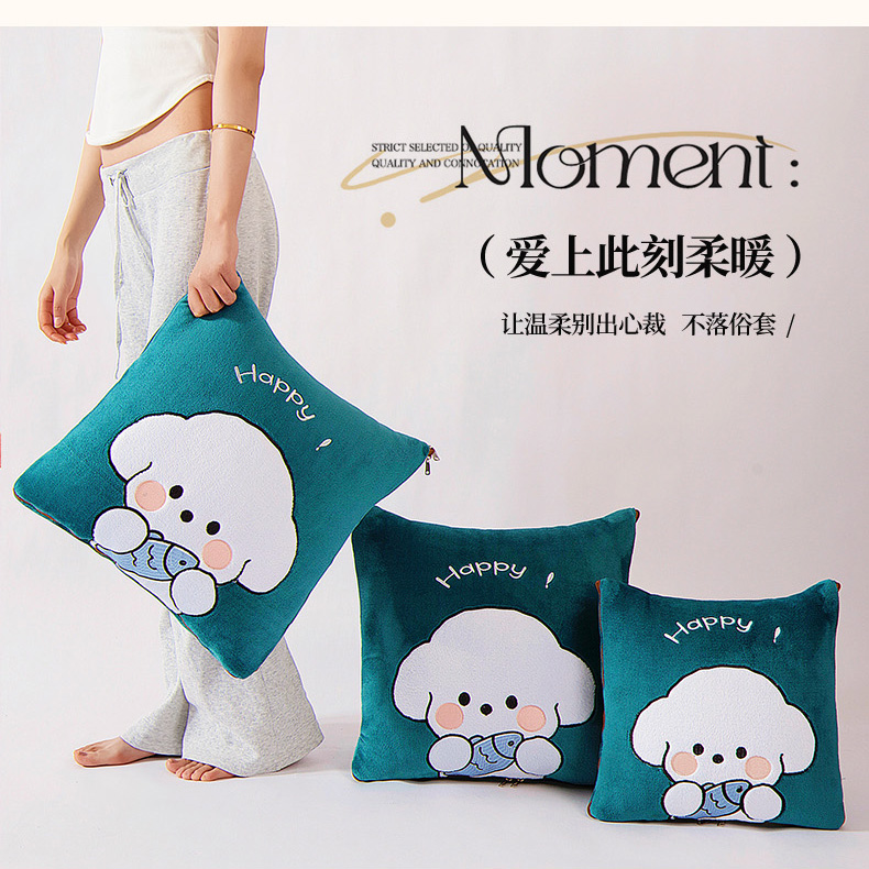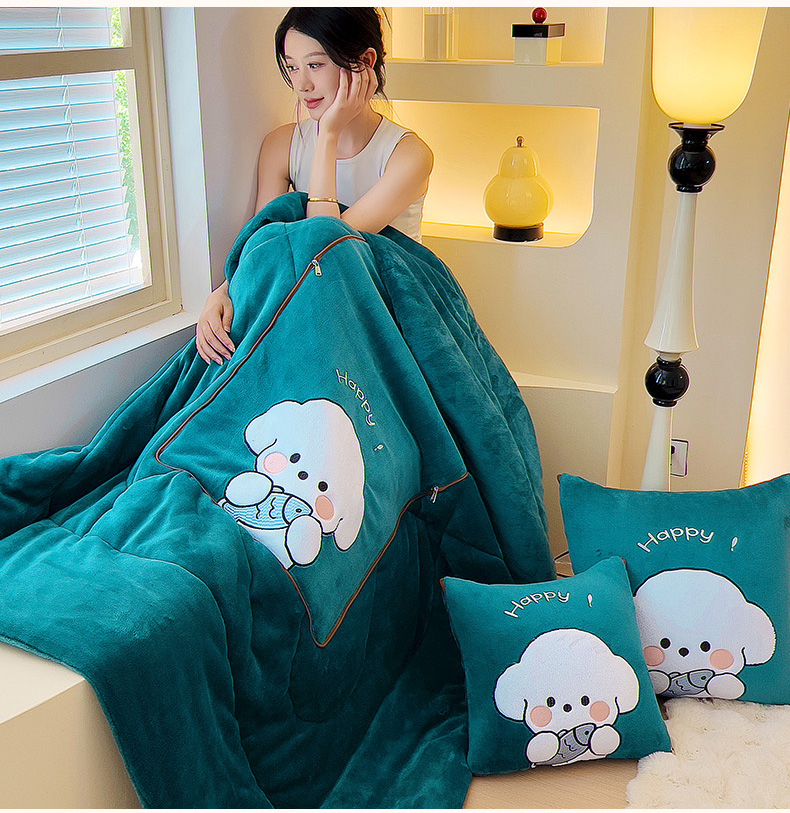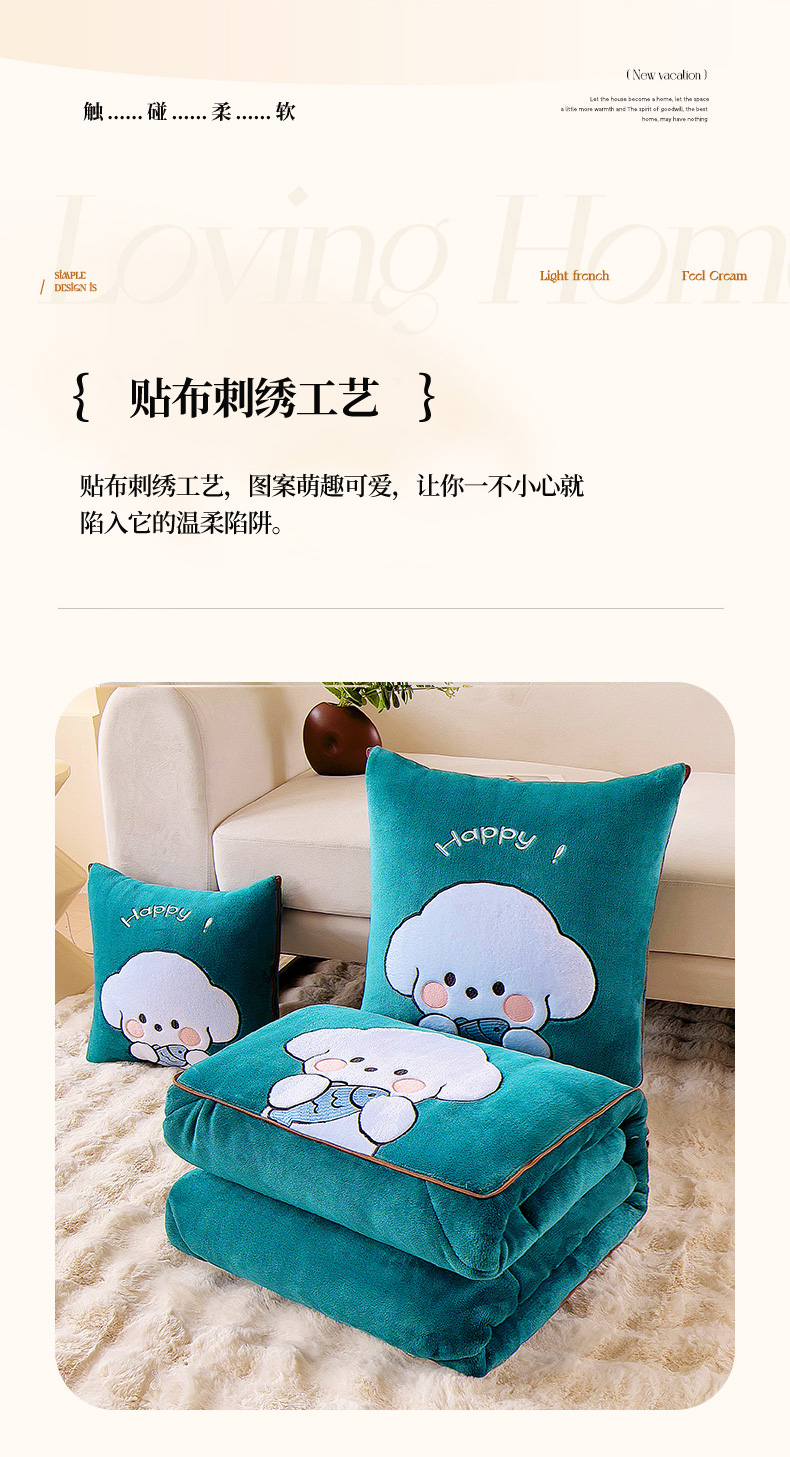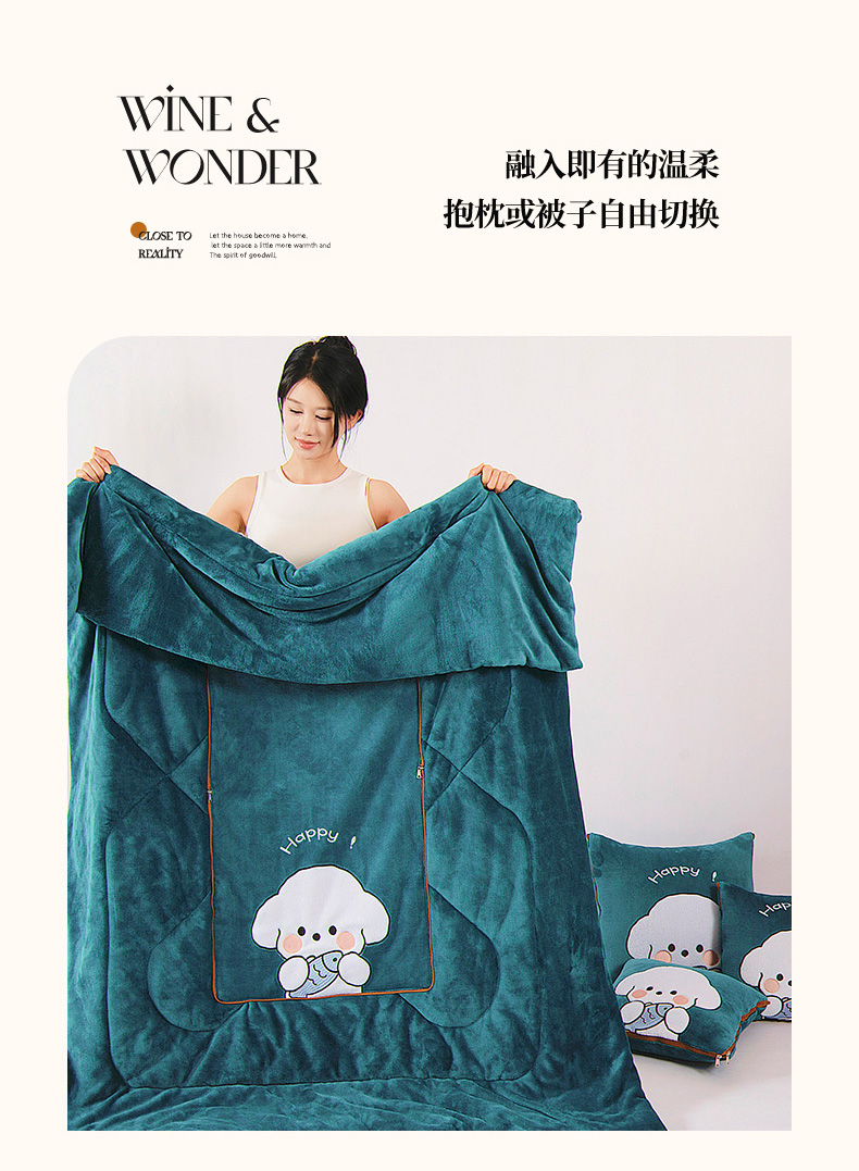 商品名称:阳光依佰抱枕被 2024秋冬新款牛奶绒可萌狗多功能抱枕被 可萌狗-孔雀绿