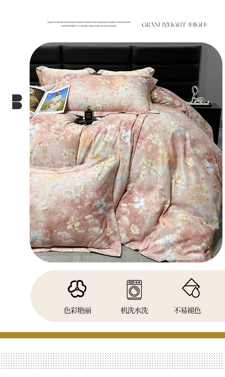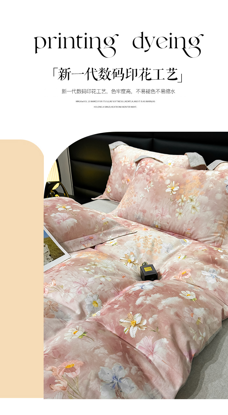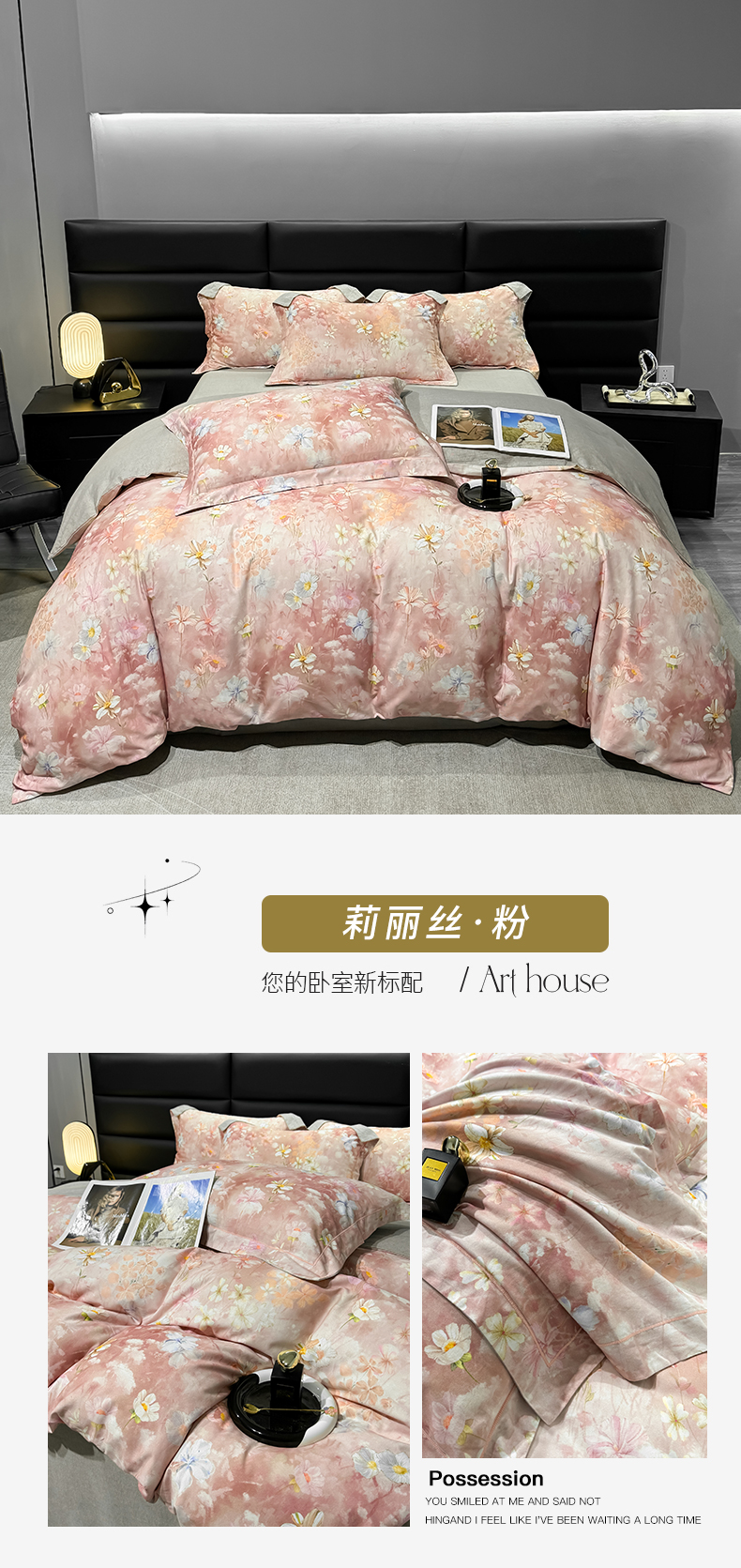 当前位置: 91家纺网 > 商品网购 > 床品套件 > 四件套 > 全棉普通四件套 > 2024新款A类全棉磨毛数码印花系列四件套 莉丽丝粉