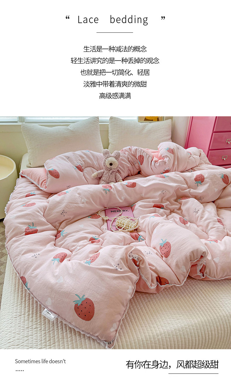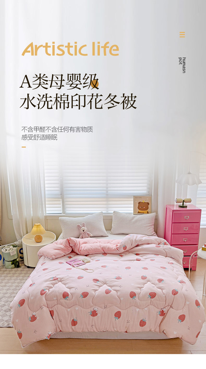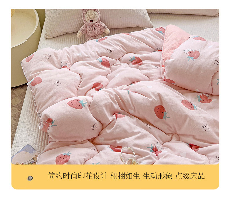 2024新款A类水洗棉印花超柔保暖冬被 草莓粉