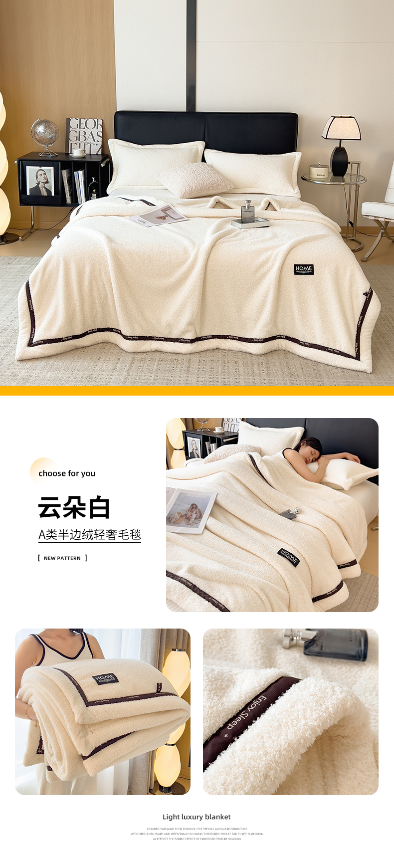 当前位置: 91家纺网 > 商品网购 > 毛毯休闲毯绒毯 > 毛毯 > 慕木家纺 2025新款纯色A类轻奢半边绒多功能毛毯直播爆款 云朵白