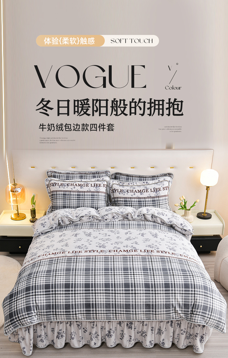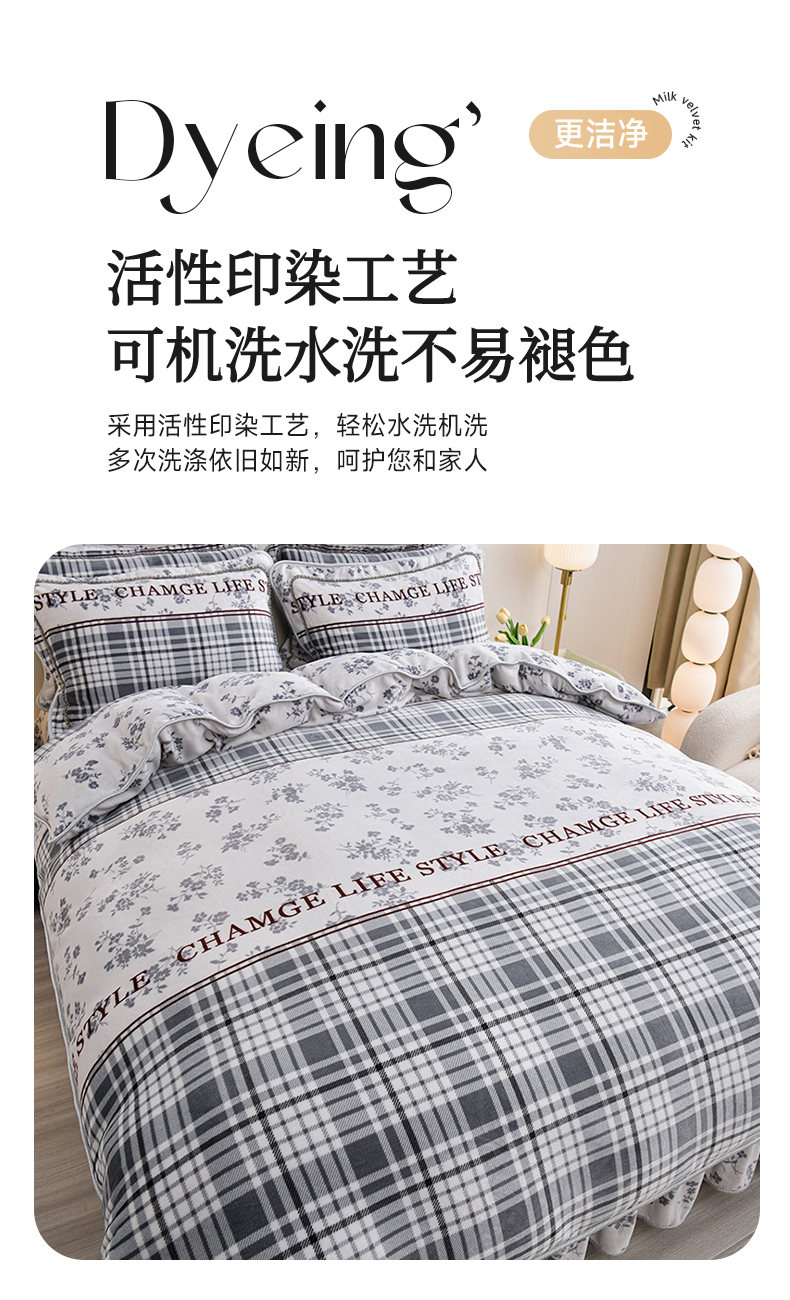 (总)赫本家纺 2025高克重牛奶绒花边床盖款四件套,爱心灰,暗香疏影,茶野,花颜,花影,花语,华尔兹,可爱猫,麦卡伦,墨染江南-灰,墨染江南-咖,欧若拉,山居,约定,云溪,七里香
