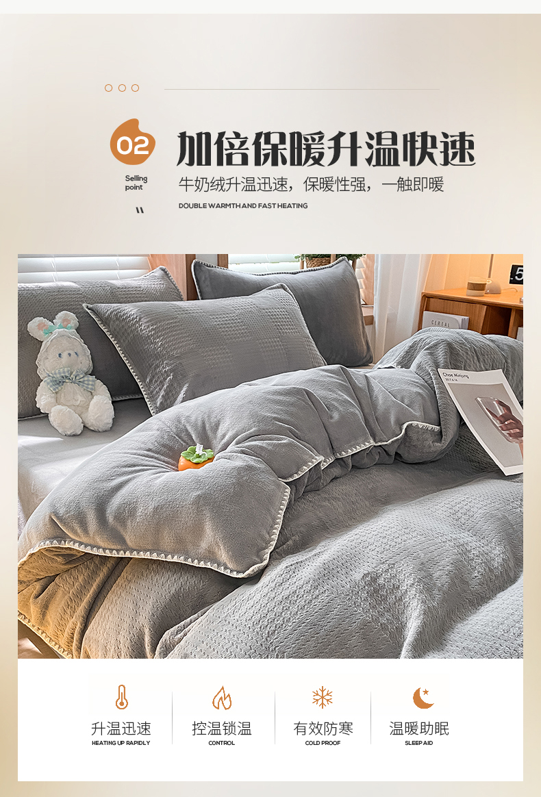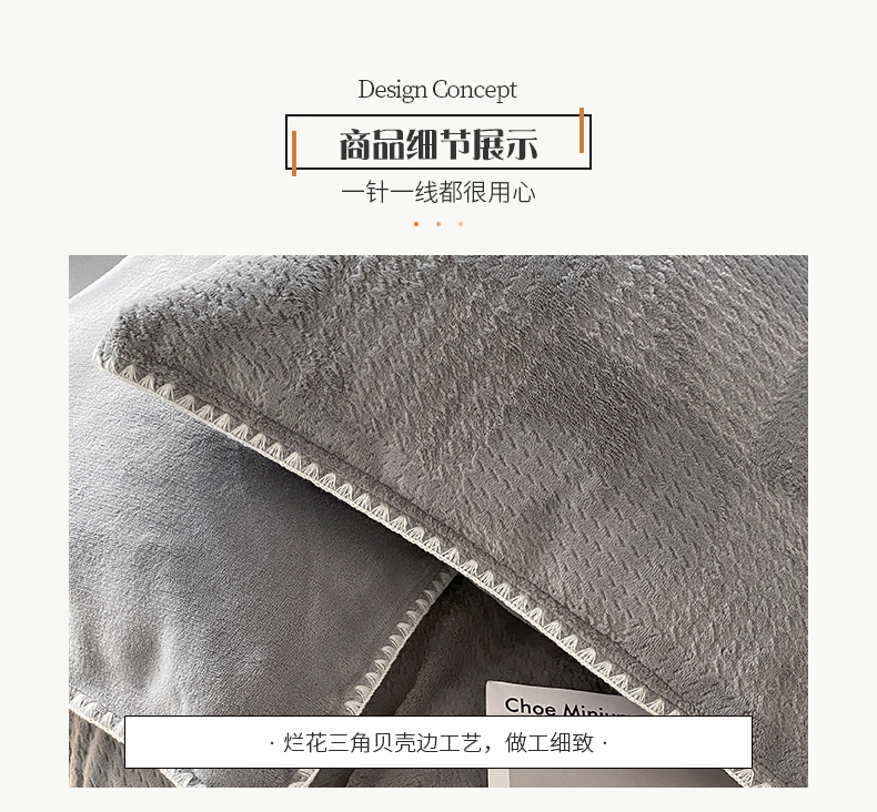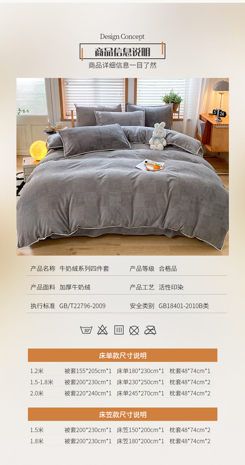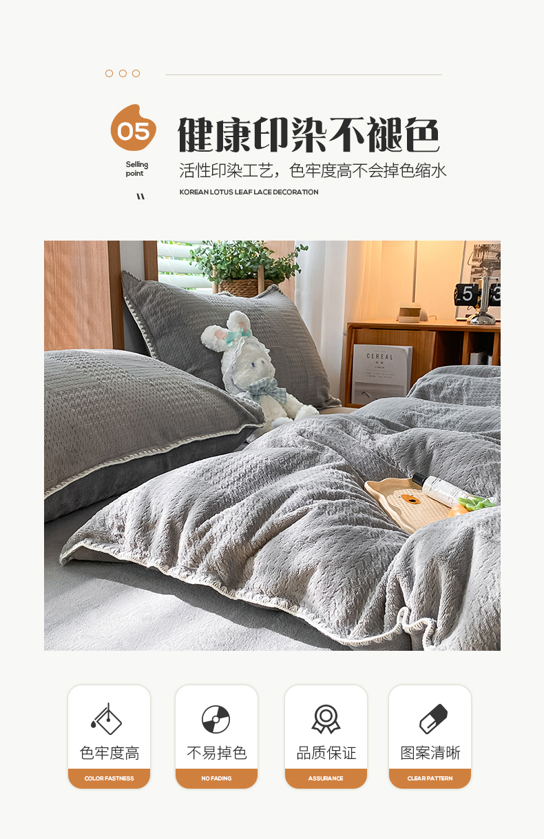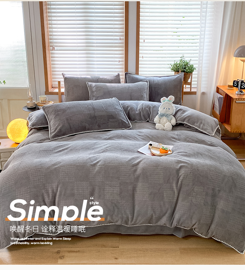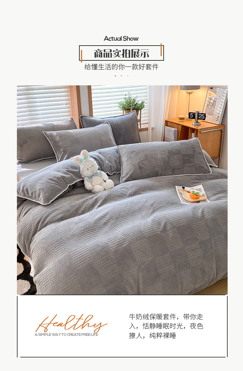 当前位置: 91家纺网 > 商品网购 > 床品套件 > 四件套 > 牛奶绒四件套 > 桃子家居 2024新款A类无印ins华夫格提花烂花雕花剪花三角贝壳边工艺加厚牛奶绒四件套单品 绒华夫格-高级灰