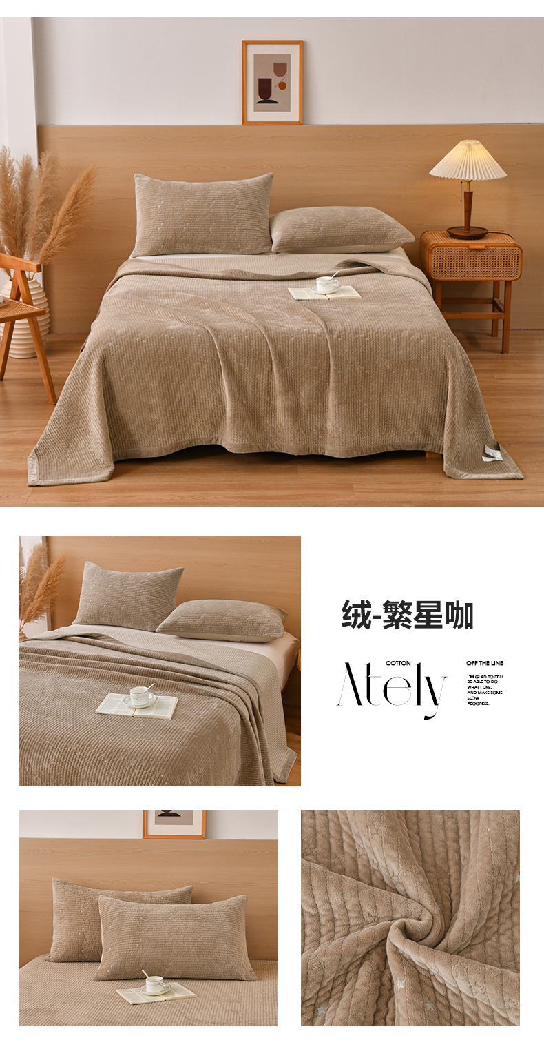 商品名称:有货 2024新款消光透气暖绒繁星床盖三件套 绒-繁星咖