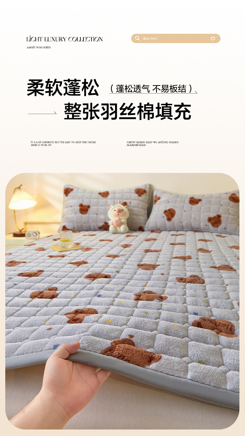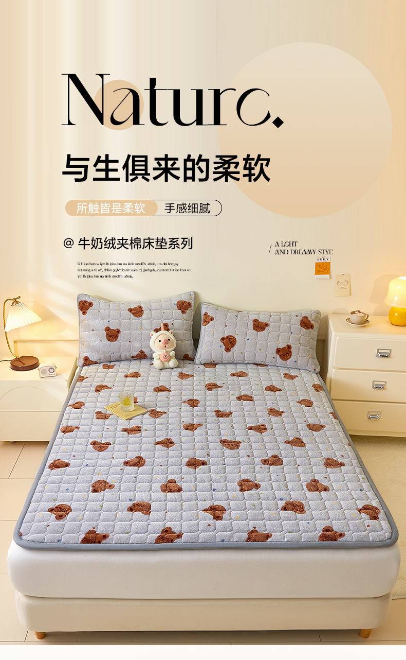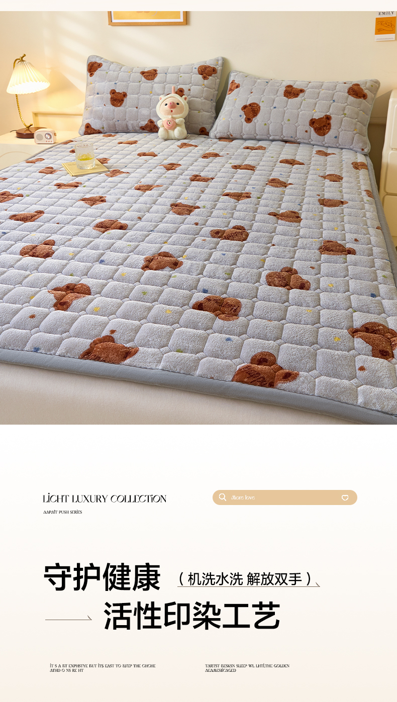 (总)卡伦家纺 2025新款A类牛奶绒夹棉加厚床垫单人双人床垫保护垫,爱的印记,爱心熊,安妮宝贝,宝石蓝,缤纷小可爱,草莓之恋,呆萌恐龙,高级灰,高雅紫,红豆沙,花间蘑力,花开一夏,花之谷,金叶飘香,开心乐园,梦想创造家,抹茶绿,南瓜灰灰,南瓜派,青春曲调,轻羽飞扬,甜蜜爱心,甜心小熊,香槟金,心相印,星幻恐龙,星梦露,熊熊世界,樱桃花语,云端漫步