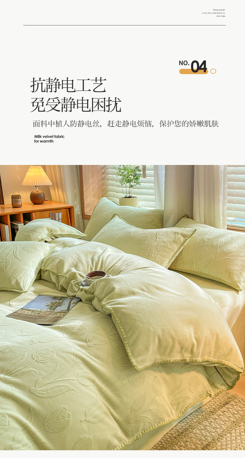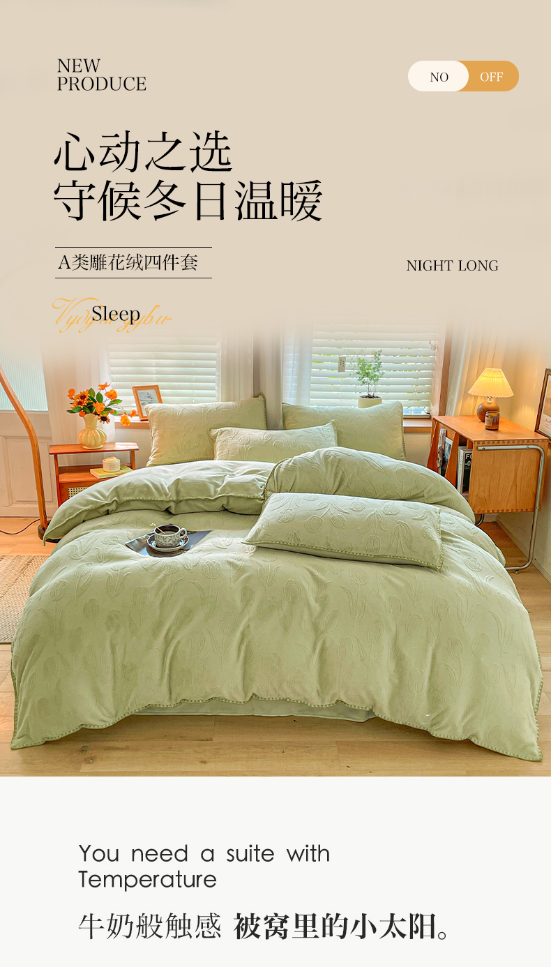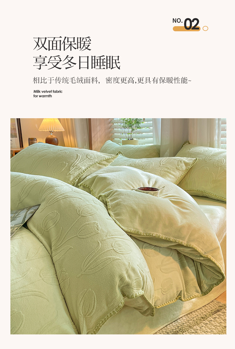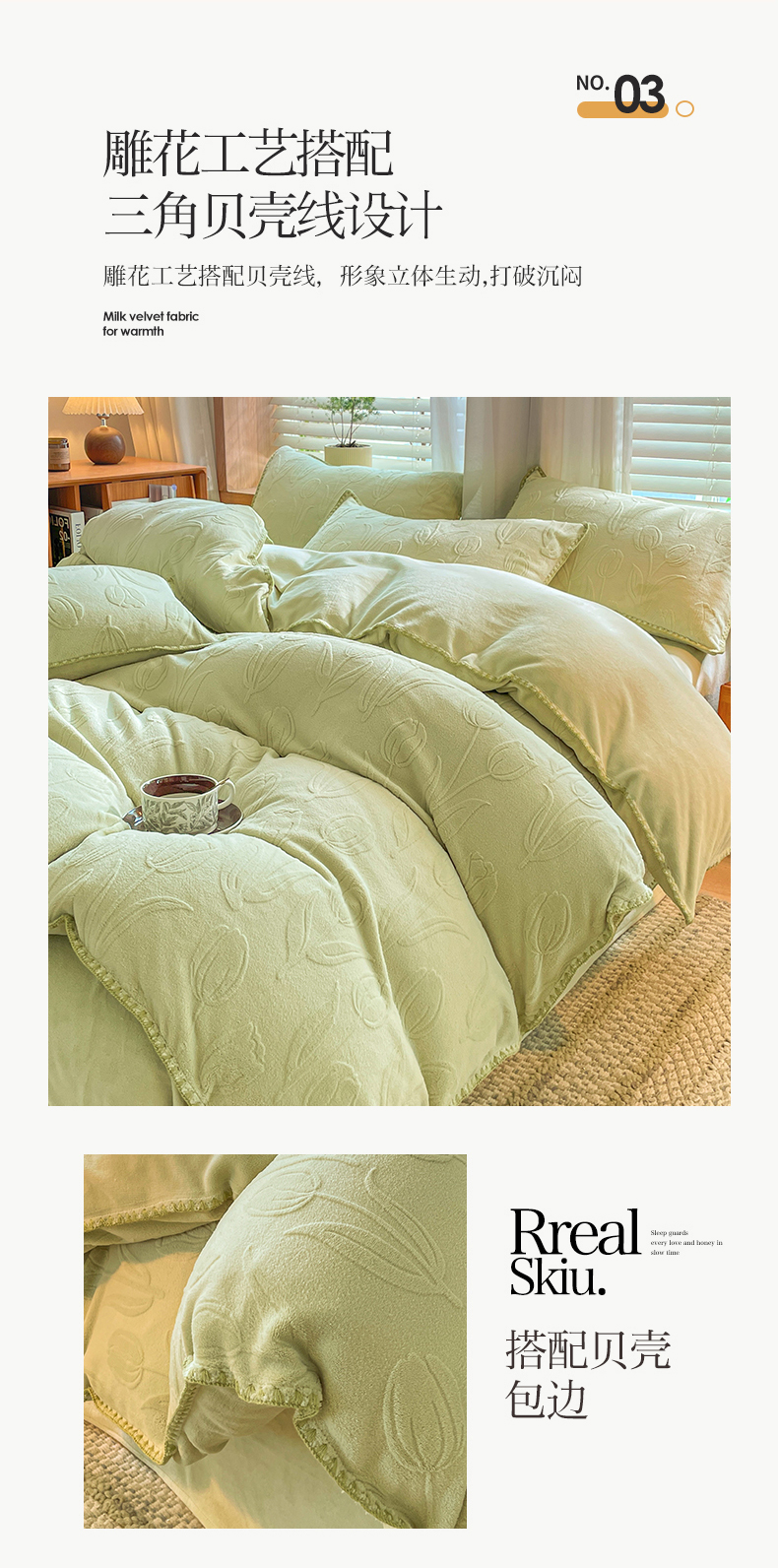 2025新款A类烂花雕花高克重加厚牛奶绒四件套三角贝壳边(有买家秀提供)向阳而生-韵绿