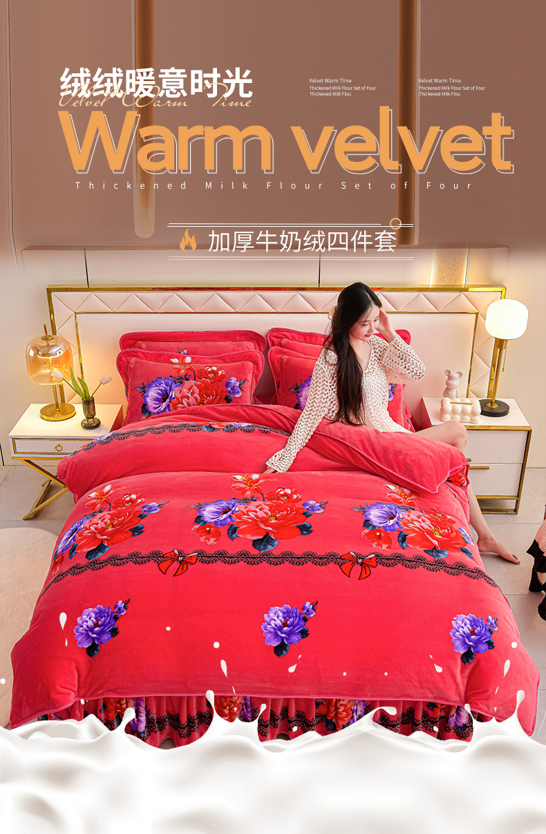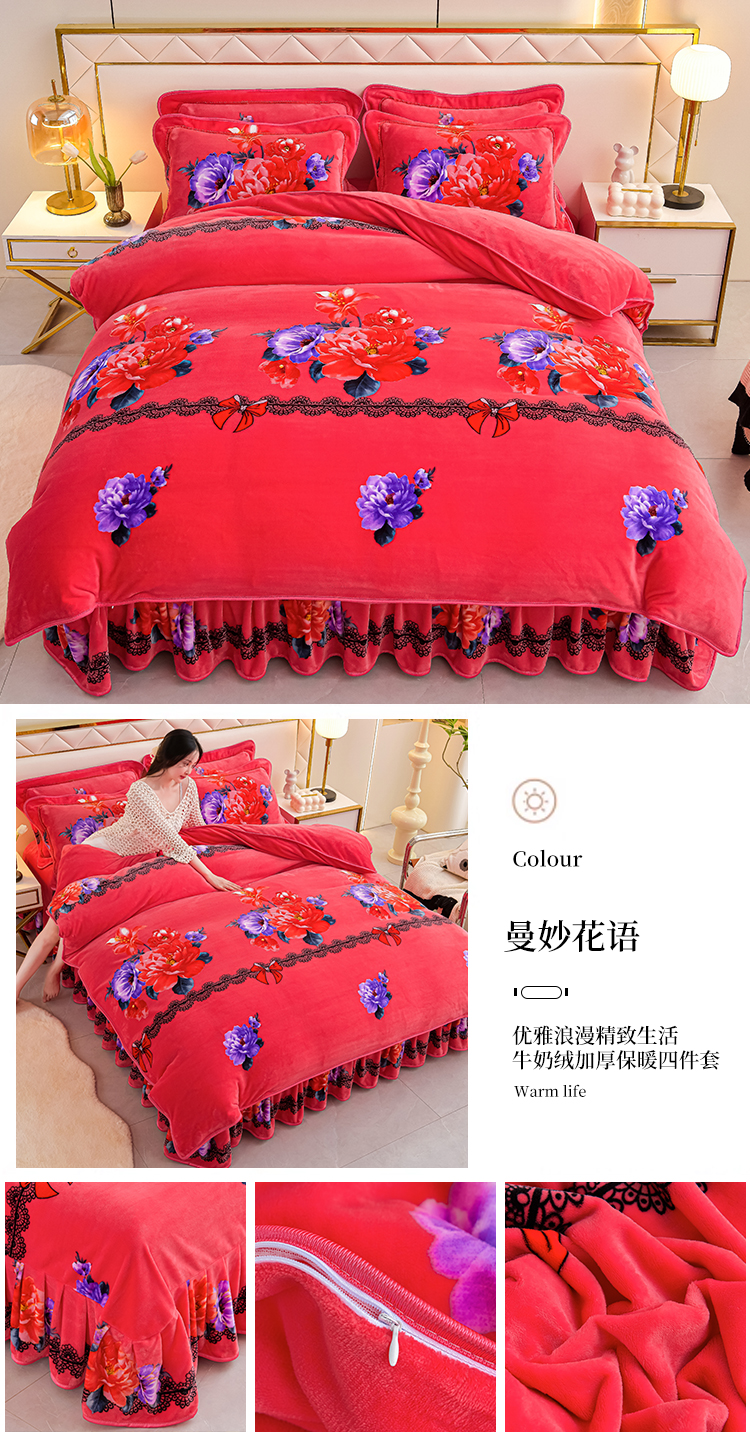 绒品荟家纺 2025新款牛奶绒四件套 曼妙花语