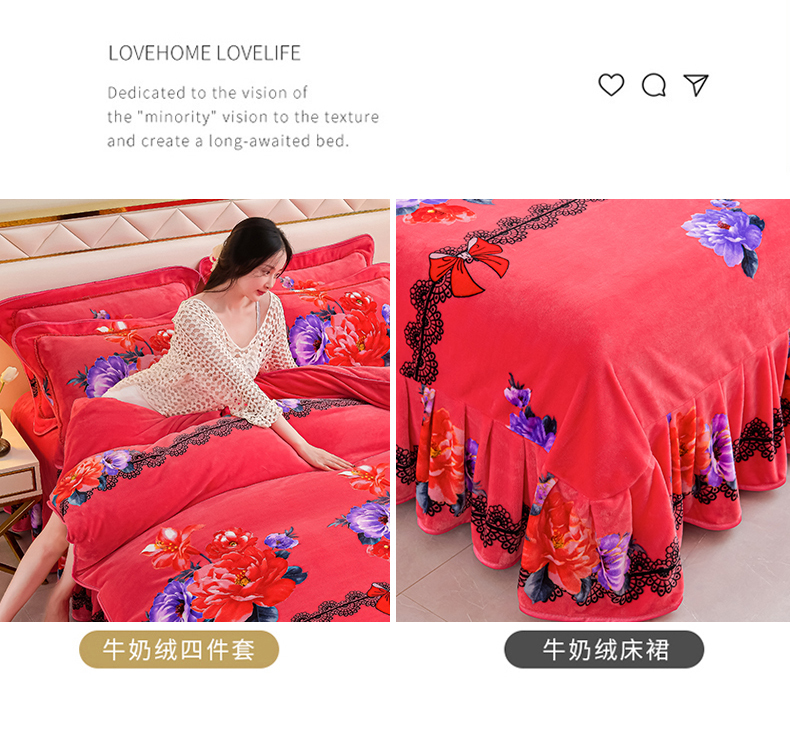 绒品荟家纺 2025新款牛奶绒四件套 心相随,心相随