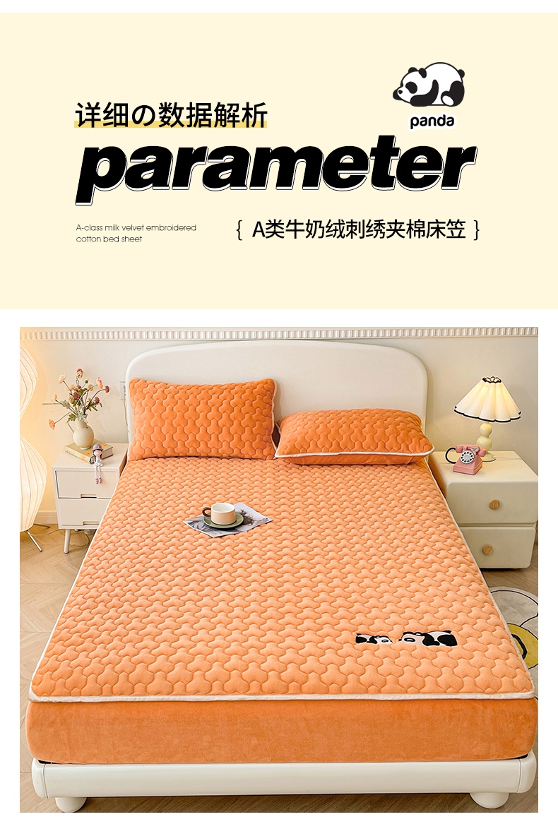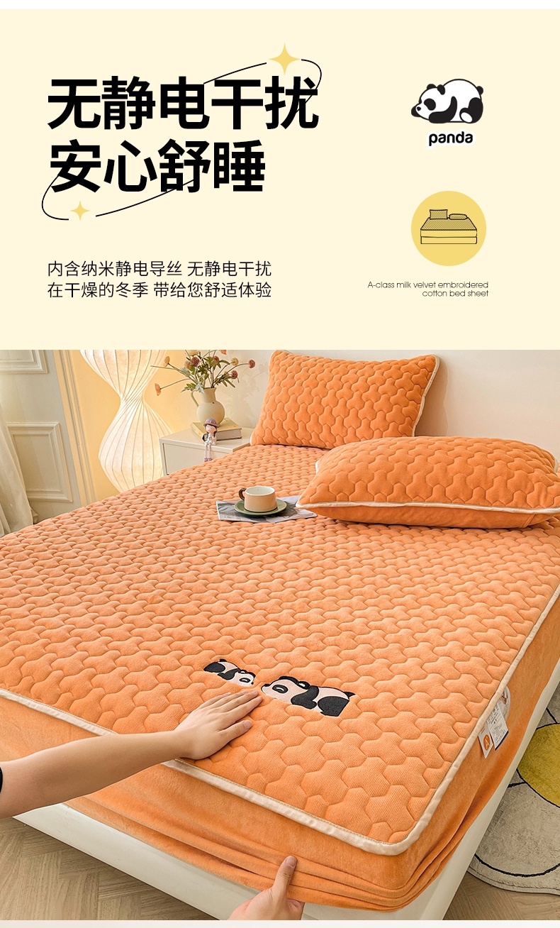 • 91家纺网 家纺一手货源 找家纺 2024新款A类牛奶绒刺绣夹棉床笠-小熊猫 小熊猫-阳光橘