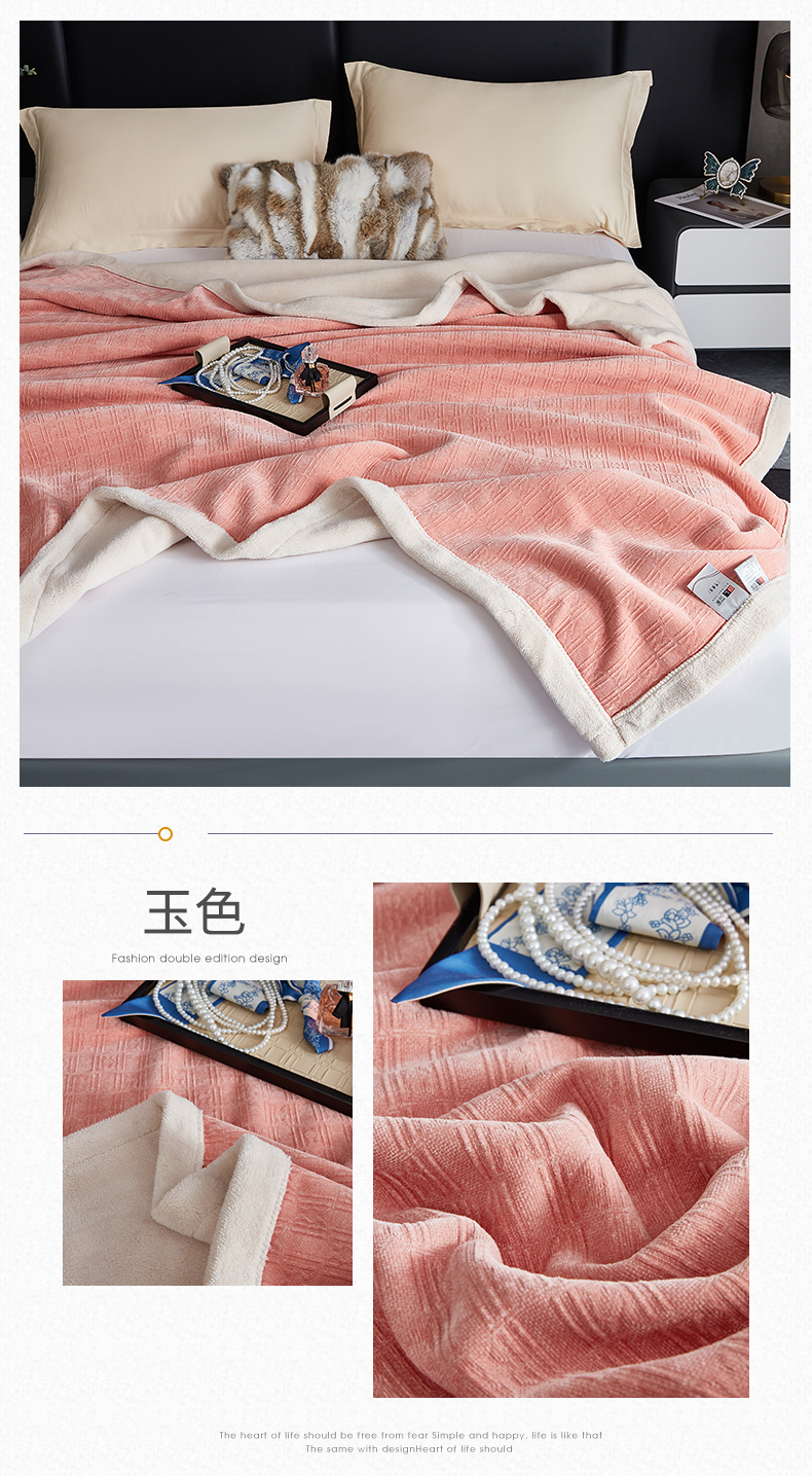 (总)凯轩毛毯网销专供 2026新款仿刺绣双层加厚压花云毯,豆沙红,绛紫色,孔雀绿,奶油咖,珊瑚粉,深灰色