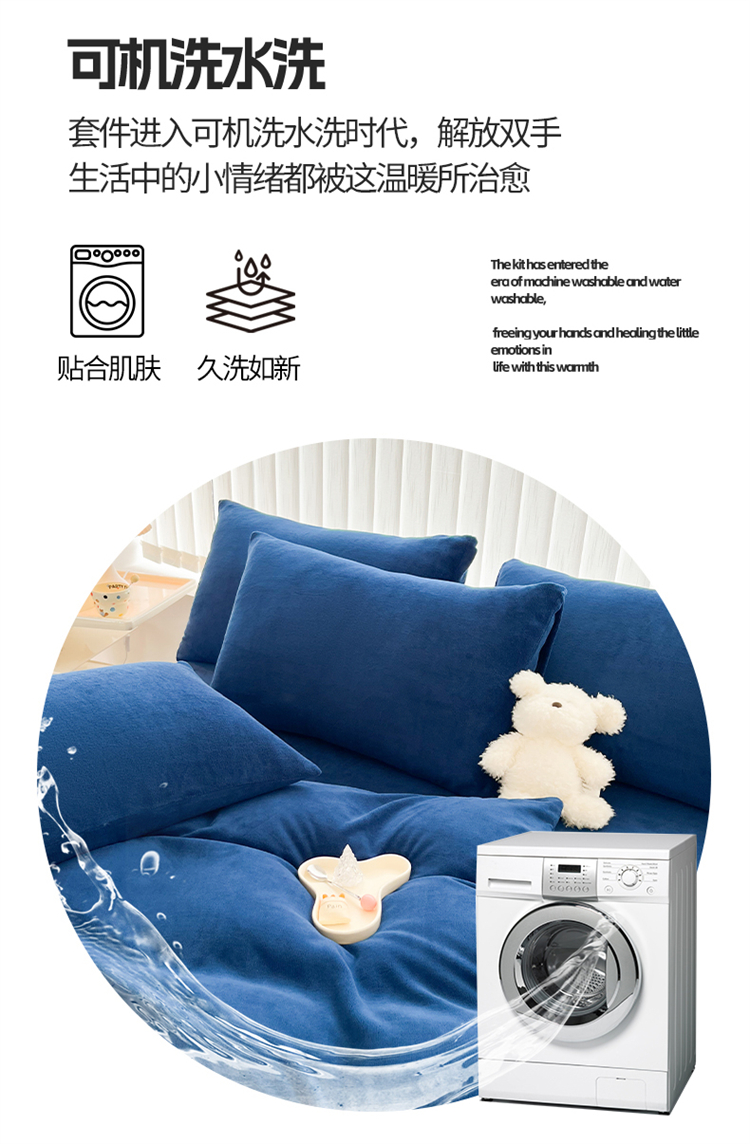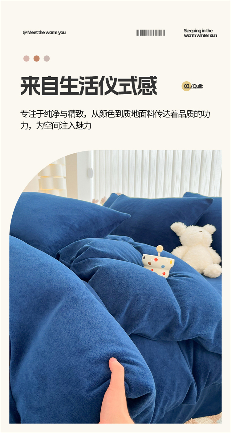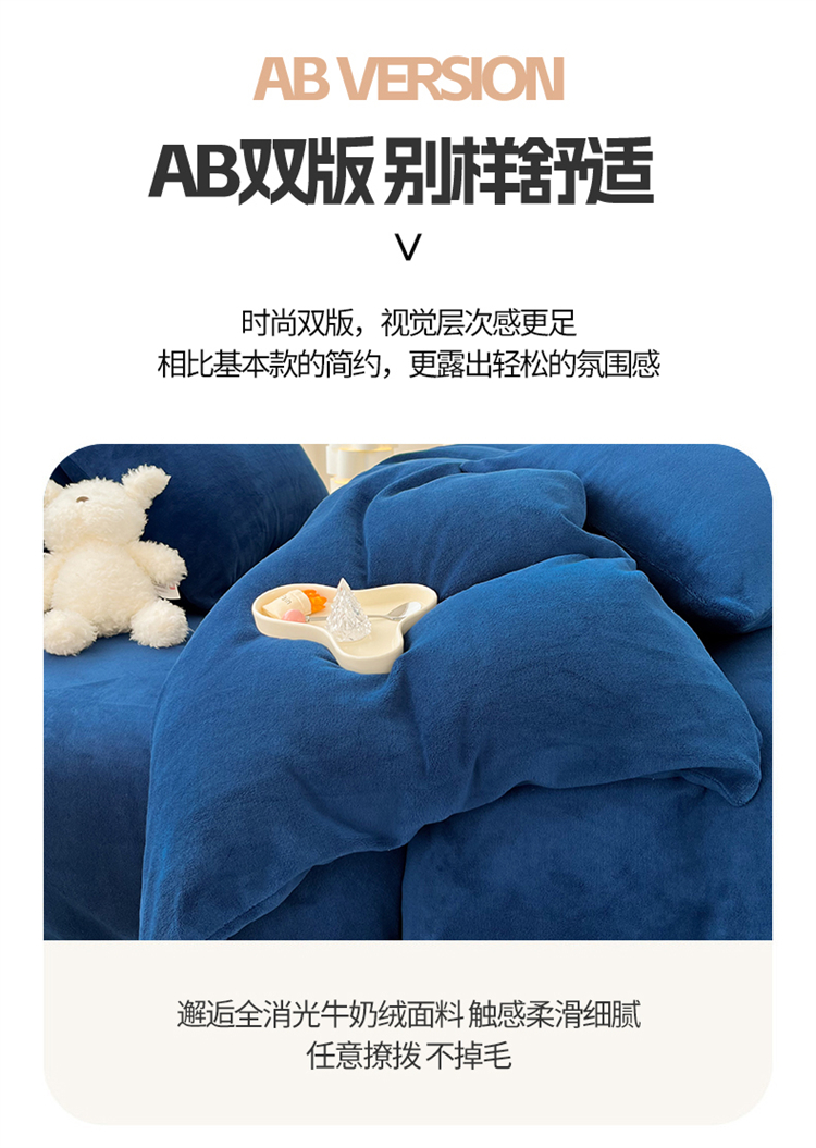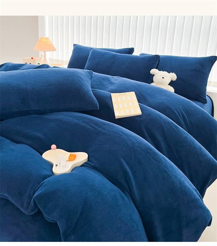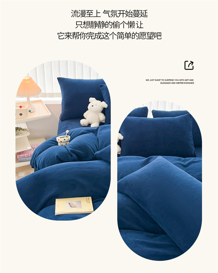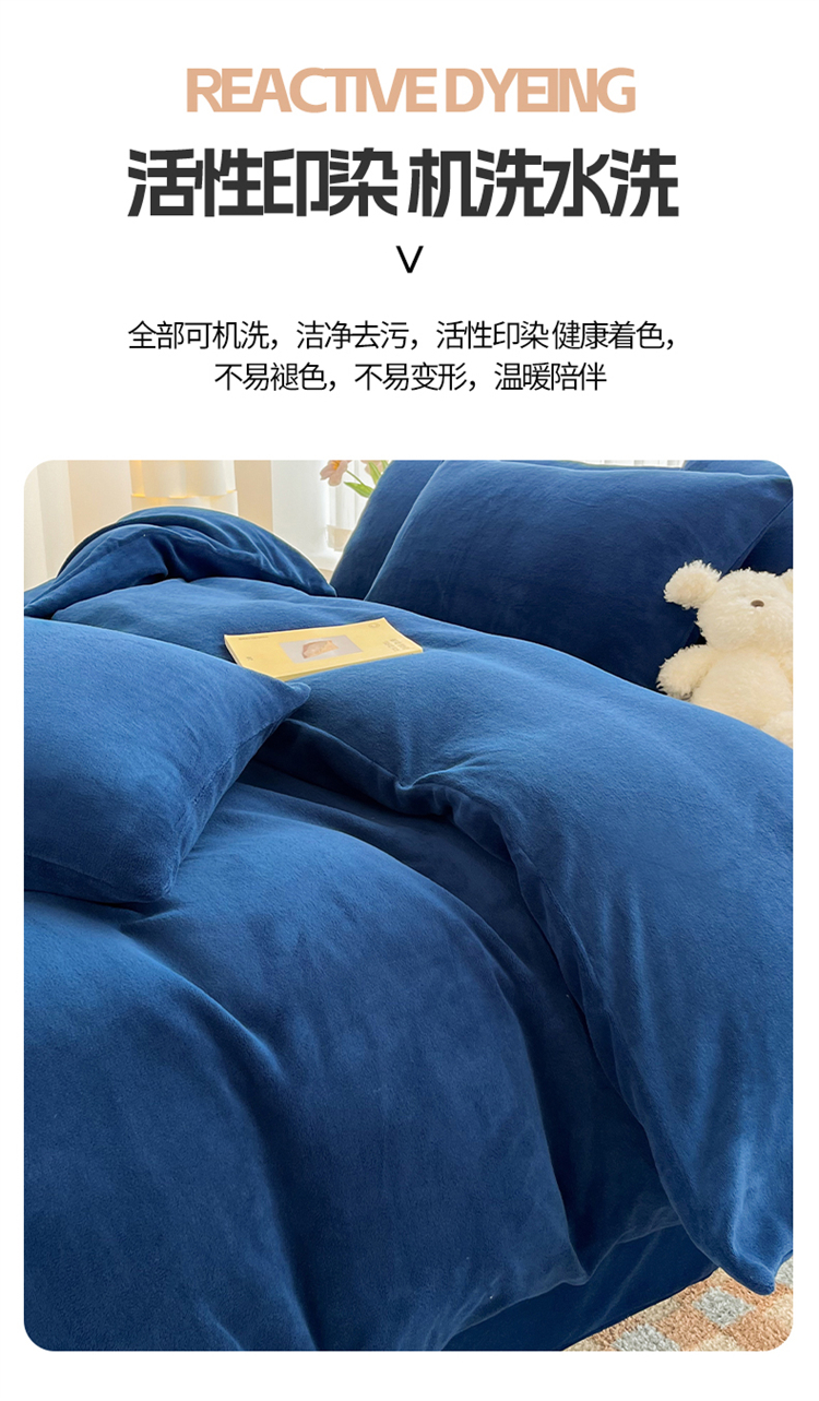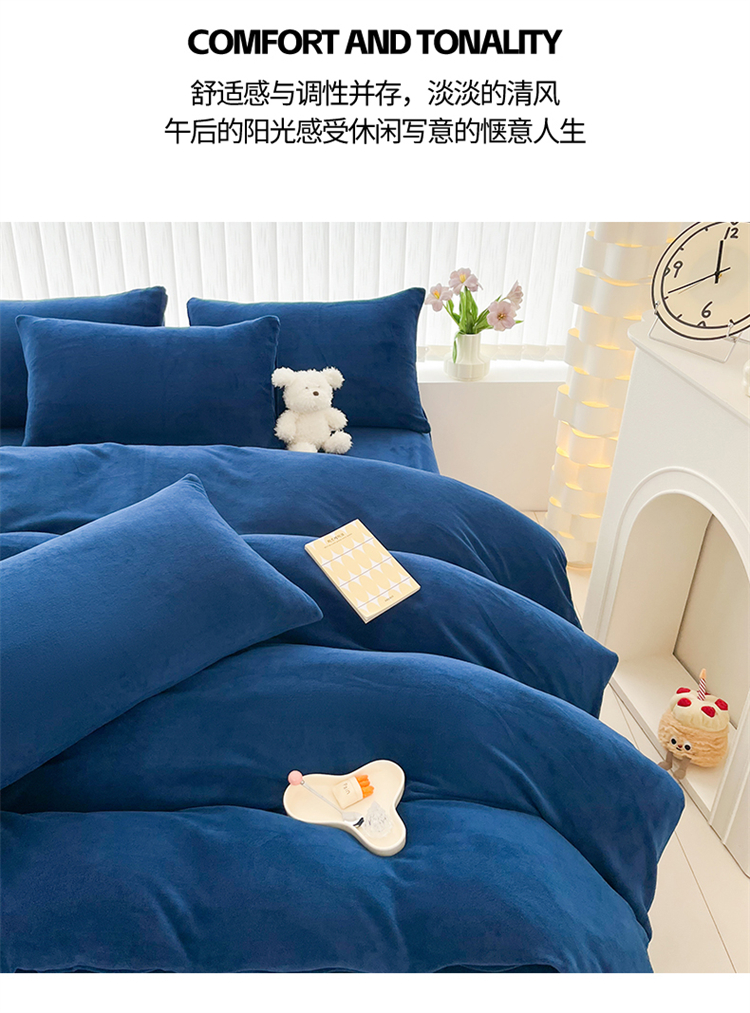 商品名称:言熙居 2024新款纯色双拼30克8一9斤牛奶绒四件套 亮蓝