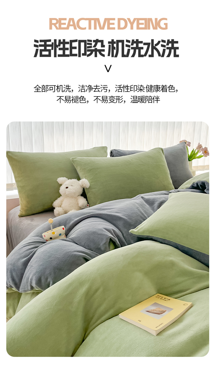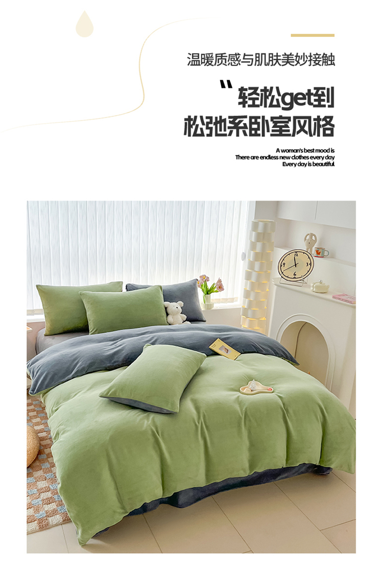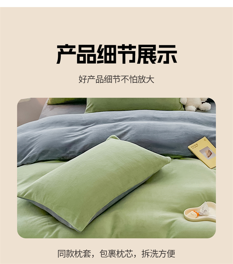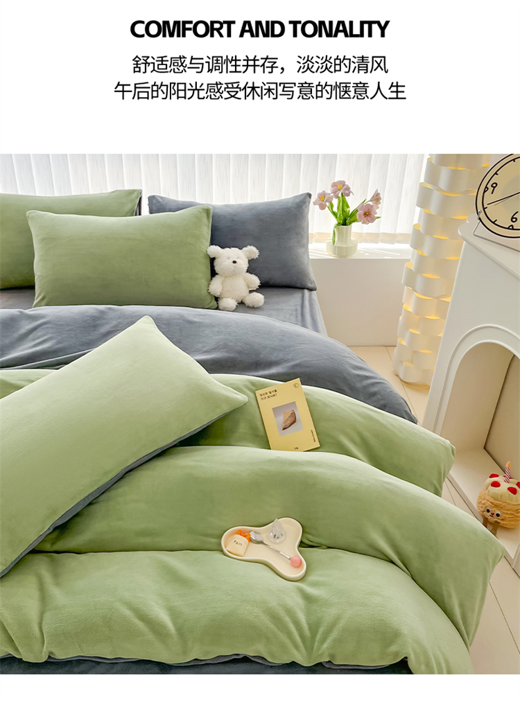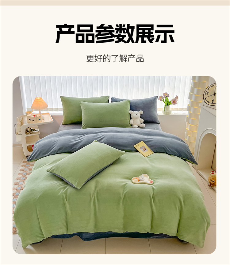 商品名称:言熙居 2024新款纯色双拼30克8一9斤牛奶绒四件套 深绿拼浅灰