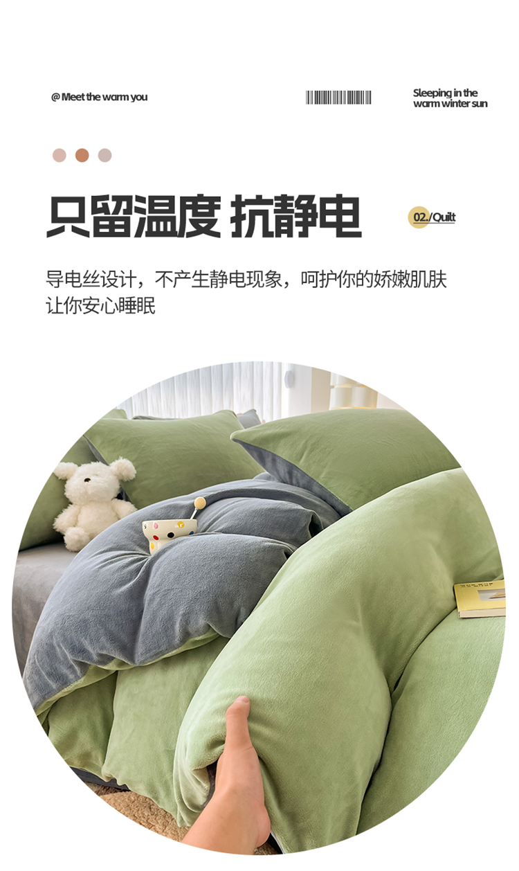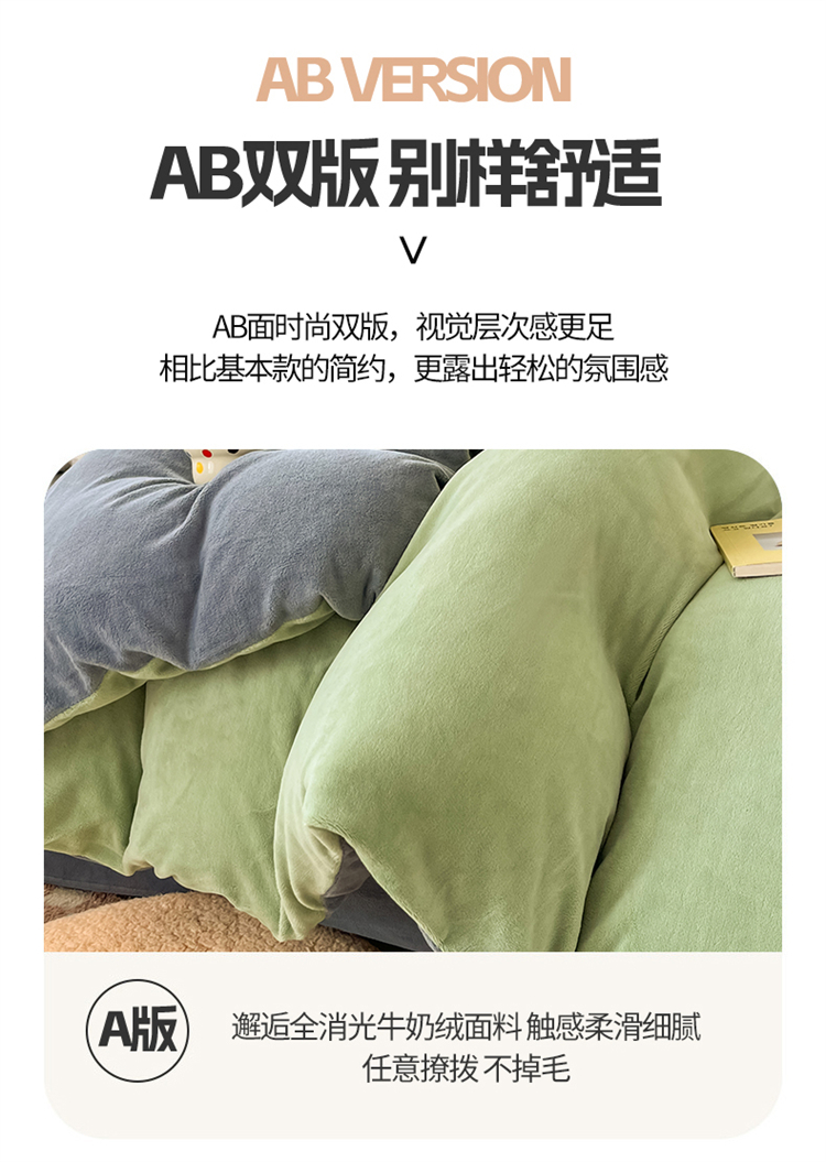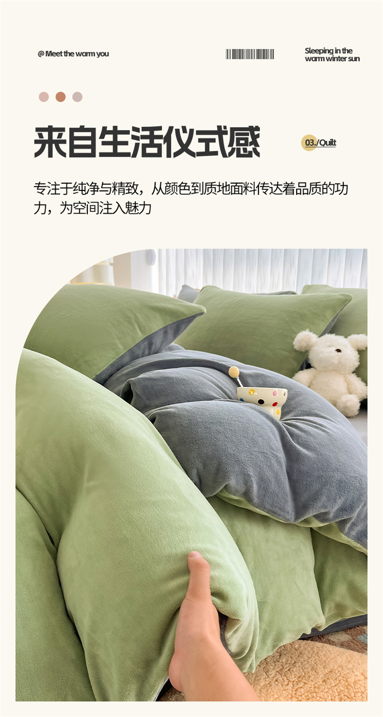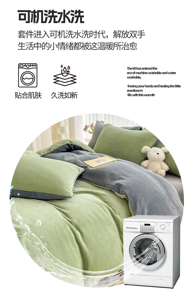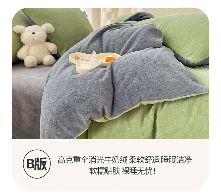 商品名称:言熙居 2024新款纯色双拼30克8一9斤牛奶绒四件套 深绿拼浅灰