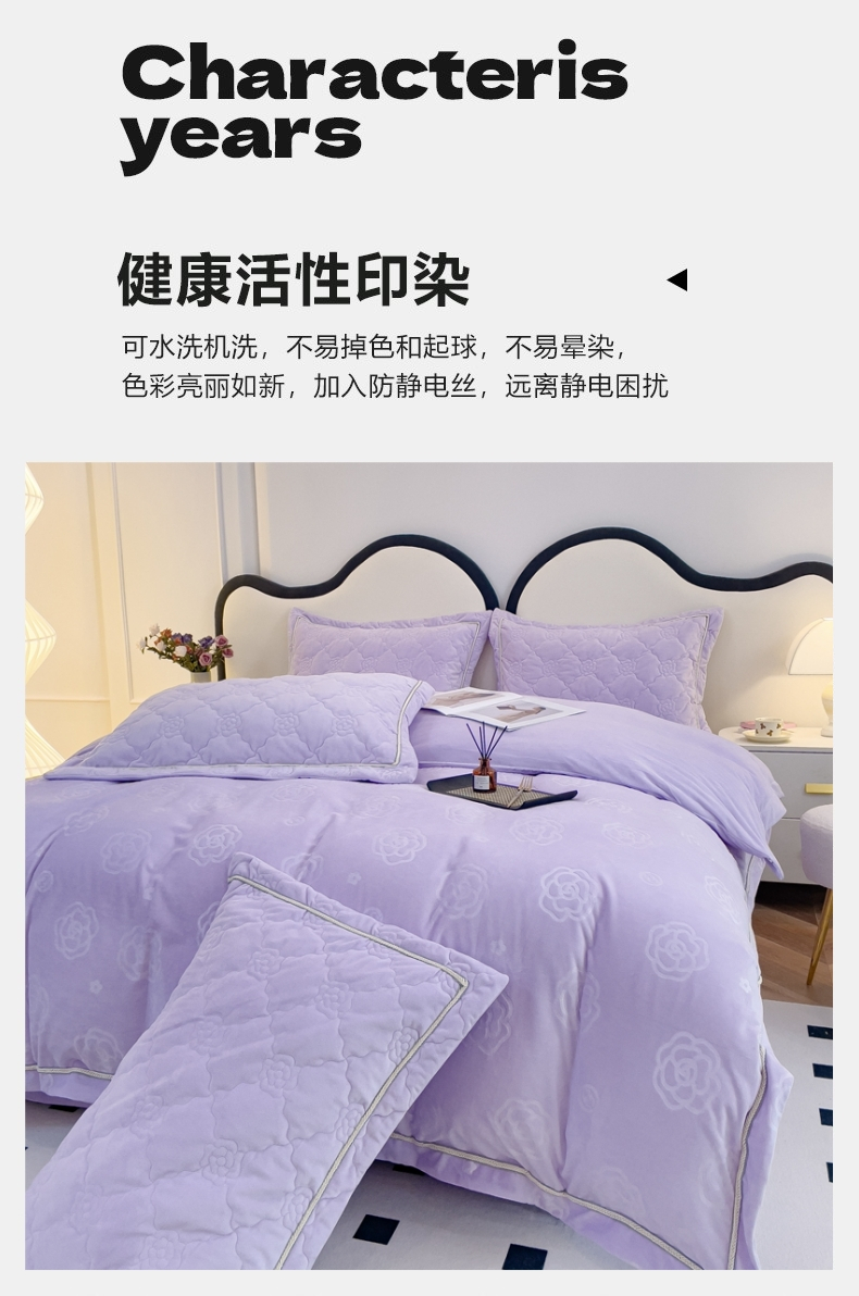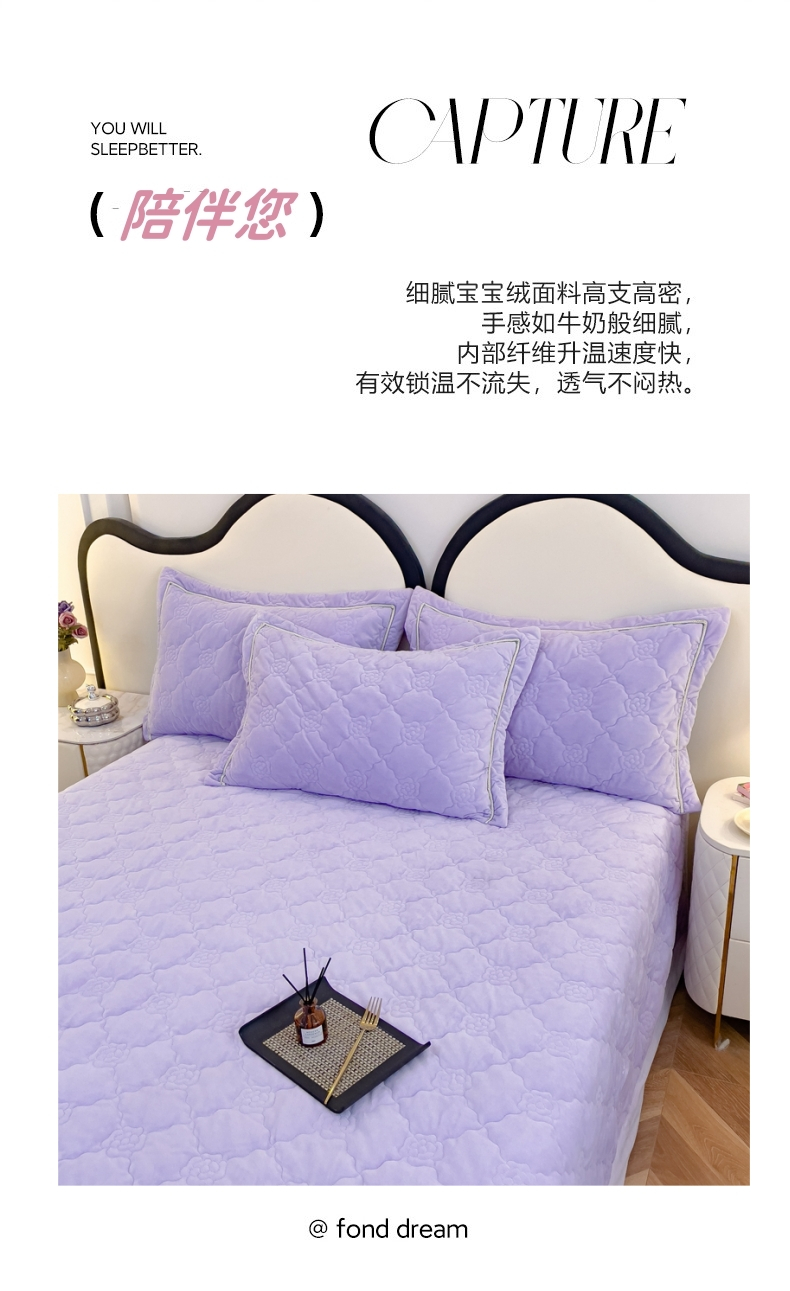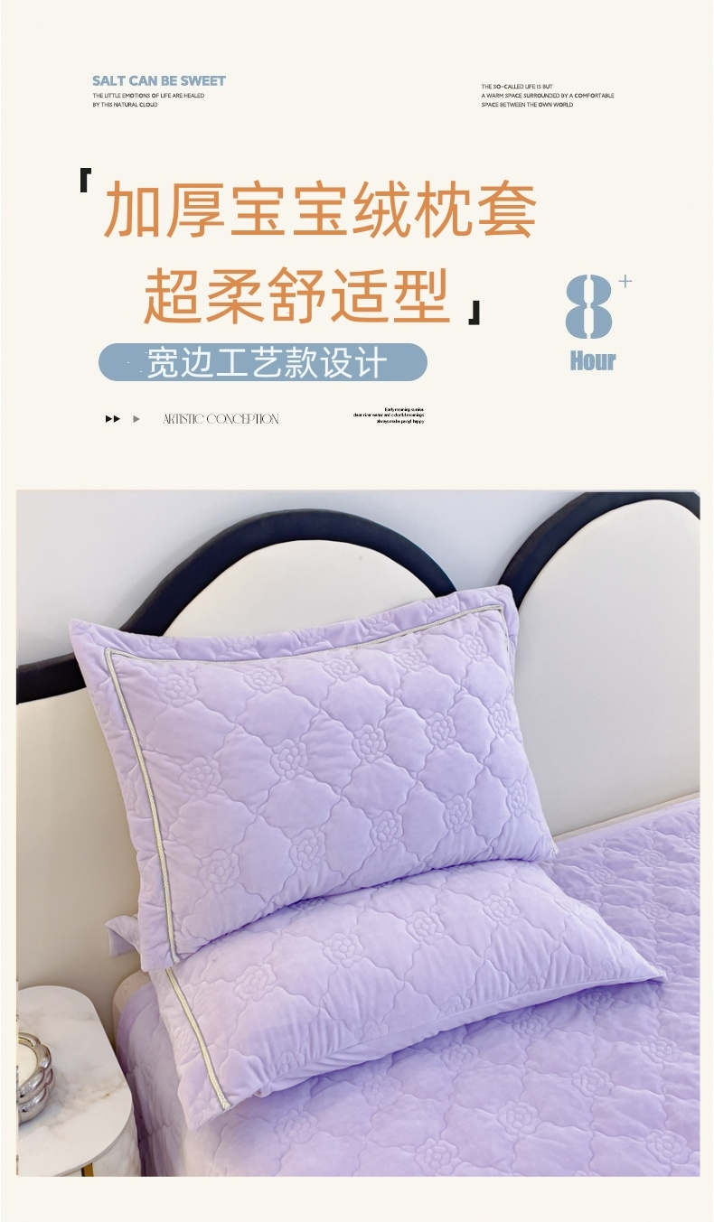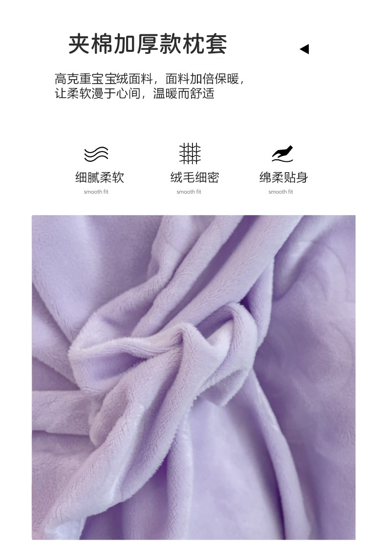 商品名称:优乐家纺 2025新款高克重宝宝绒夹棉床盖系列单枕套 爱丽丝-浪漫紫