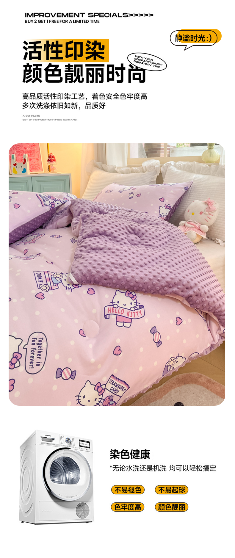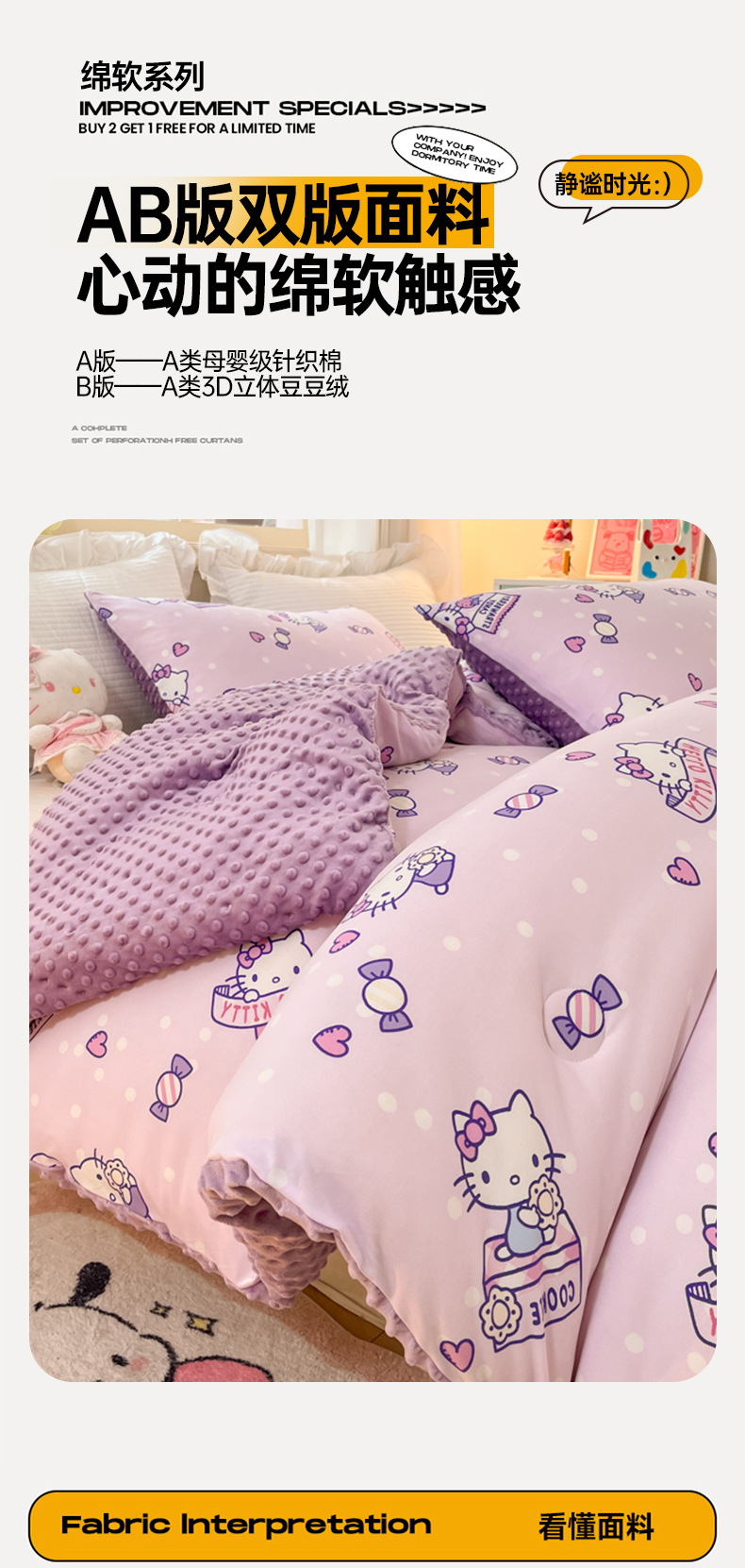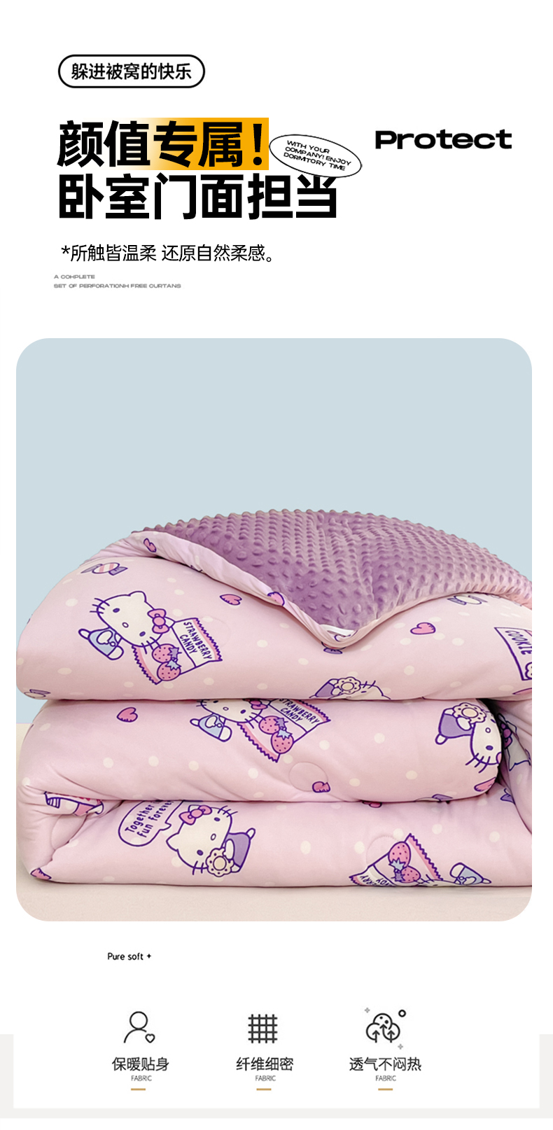 • 91家纺网 家纺一手货源 找家纺 心卓婴童馆 2025新款三丽欧针织棉豆豆被系列成人款 糖果凯蒂猫