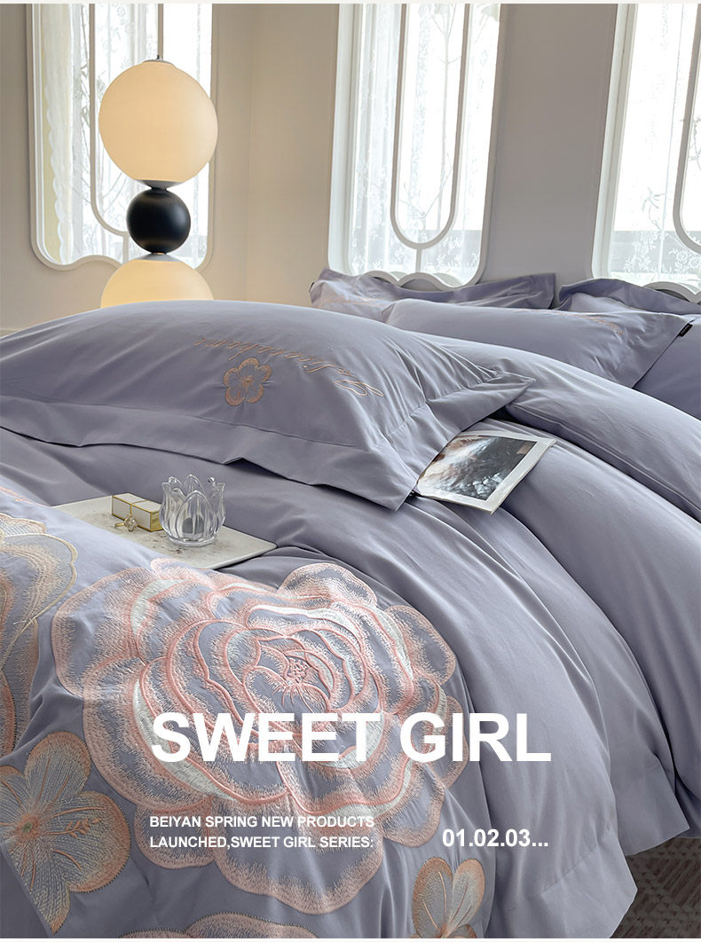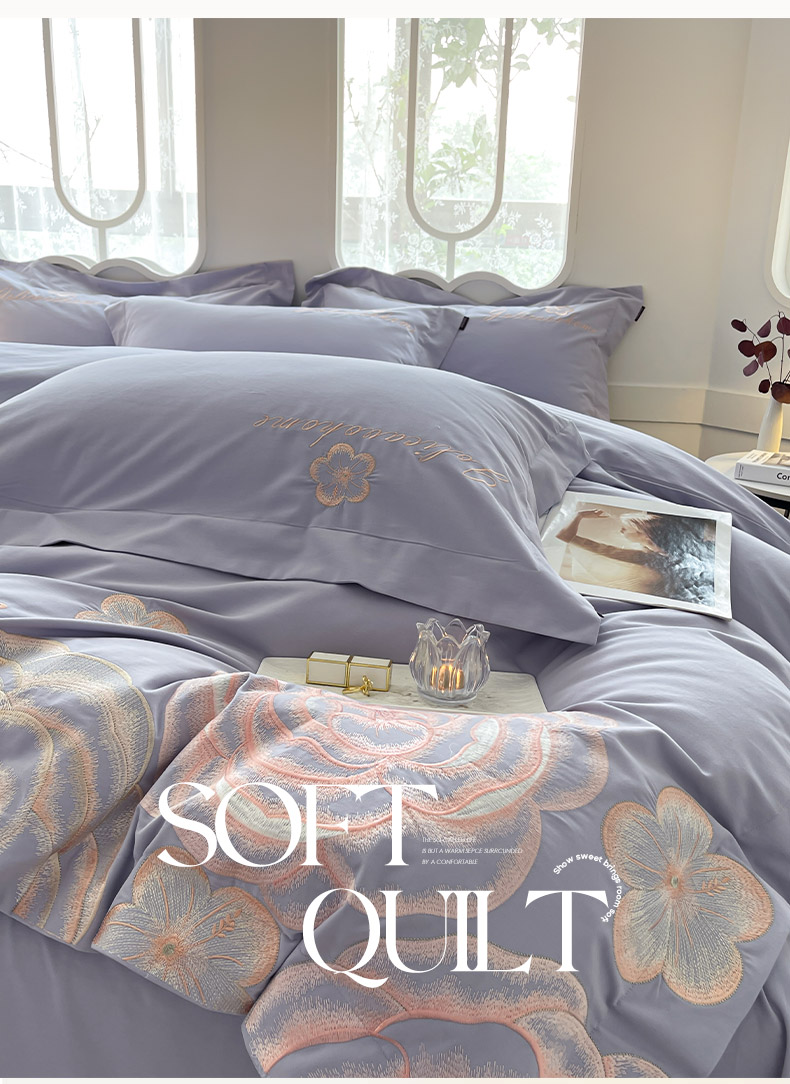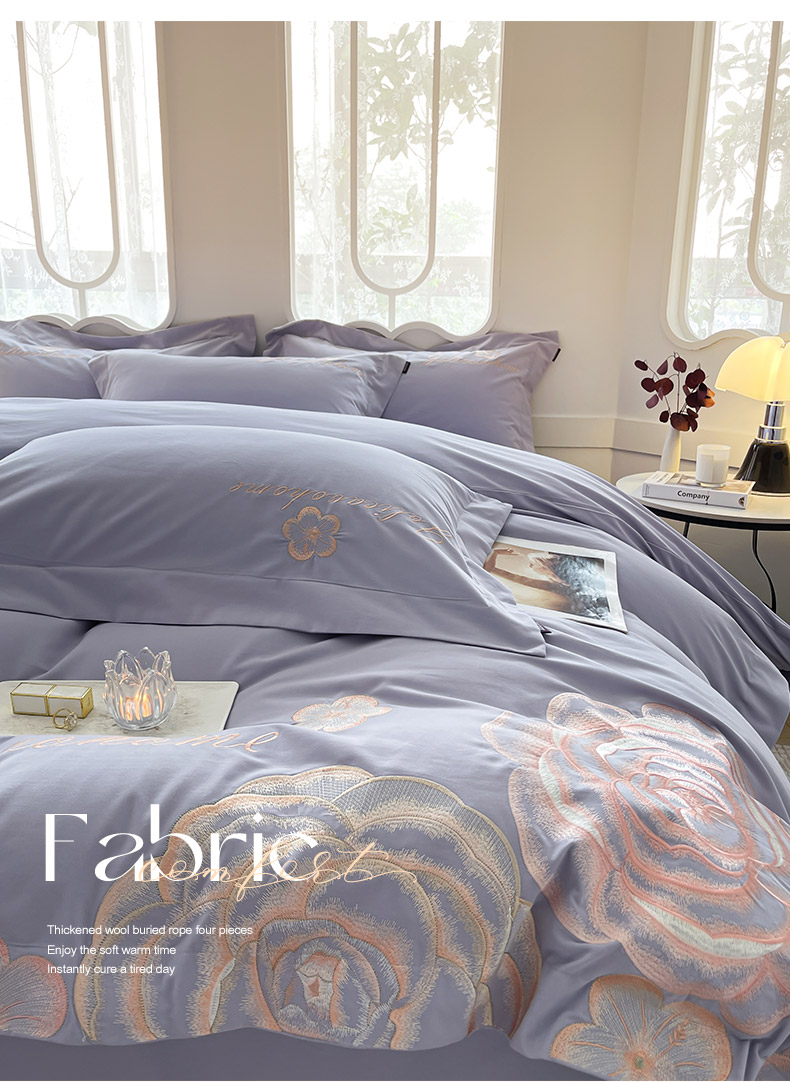(总) 2026马年特惠新品A类长绒棉纯棉四件套100全棉重工刺绣被套床单床笠轻奢高级感床上用品-花之语,花之语-白粉,花之语-黛紫,花之语-慕蓝,花之语-颜粉
