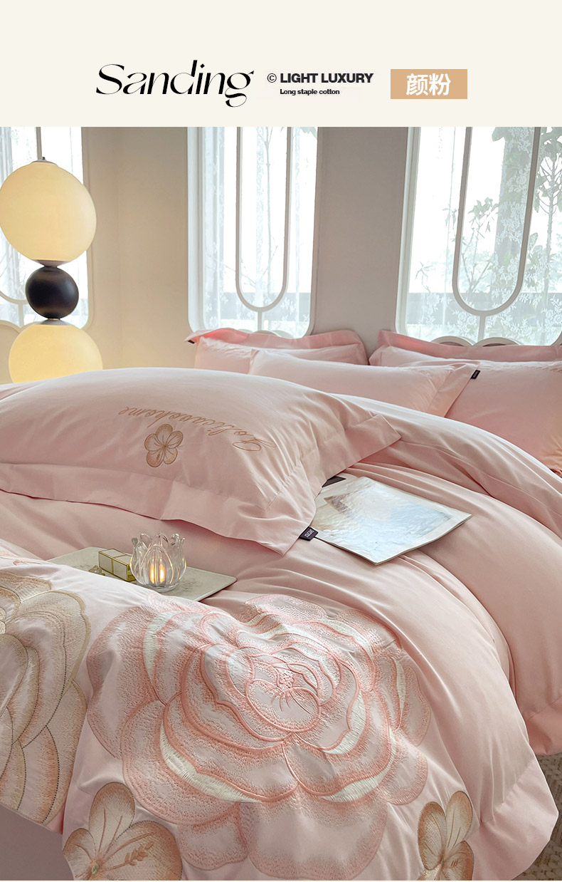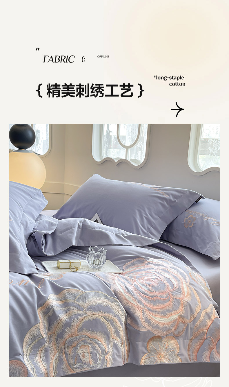 (总) 2025春夏长绒棉四件套纯棉全棉轻奢风床单被套重工刺绣床上用品,芊羽梦-白粉,芊羽梦-茶绿,芊羽梦-黛紫,芊羽梦-慕蓝,芊羽梦-颜粉