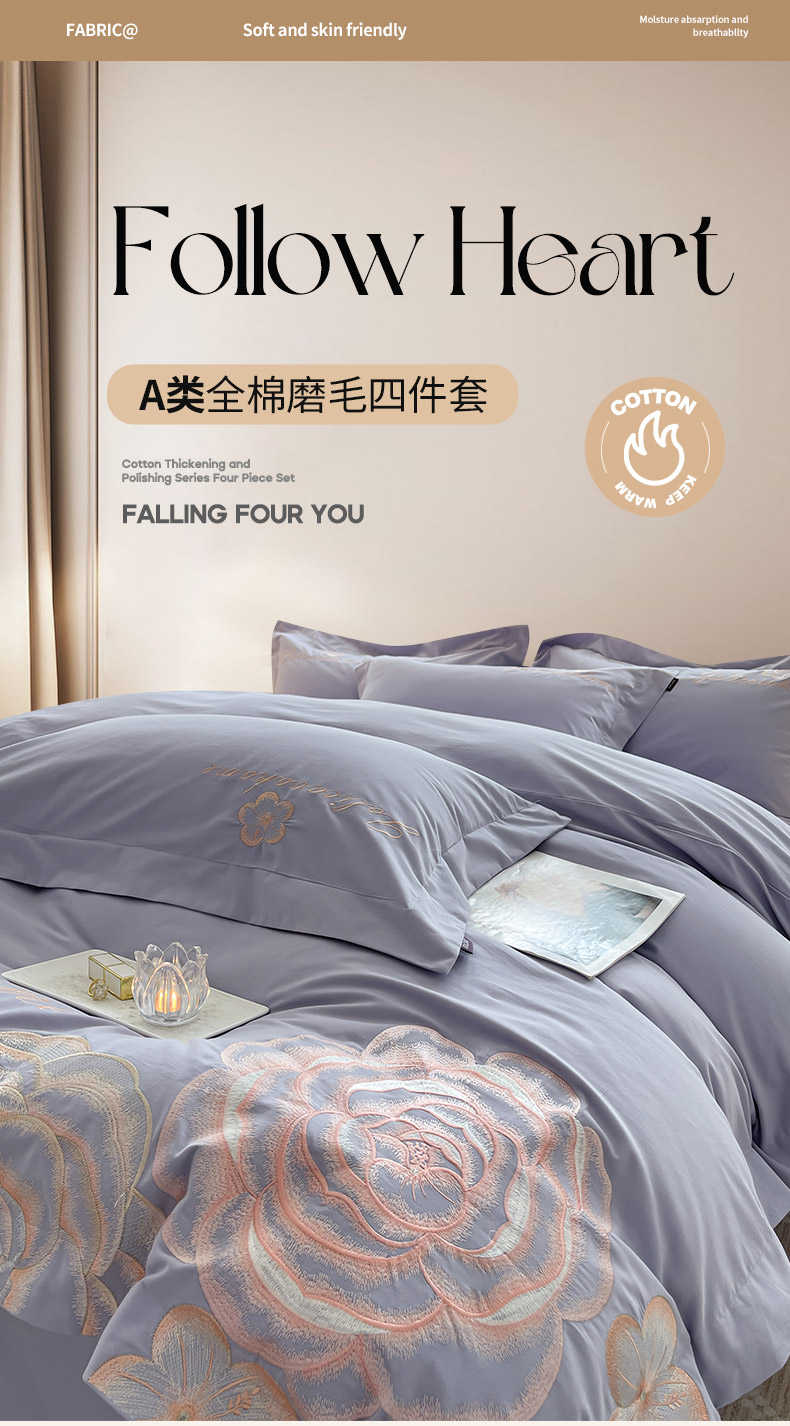 (总)A类加厚保暖全棉磨毛四件套纯棉重工刺绣轻奢风床单被套纯色新疆棉冬季床上用品-晨光蝶语,晨光蝶语-白桃,晨光蝶语-茶绿,晨光蝶语-红桃,晨光蝶语-莓蓝