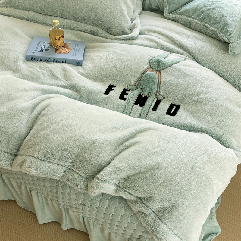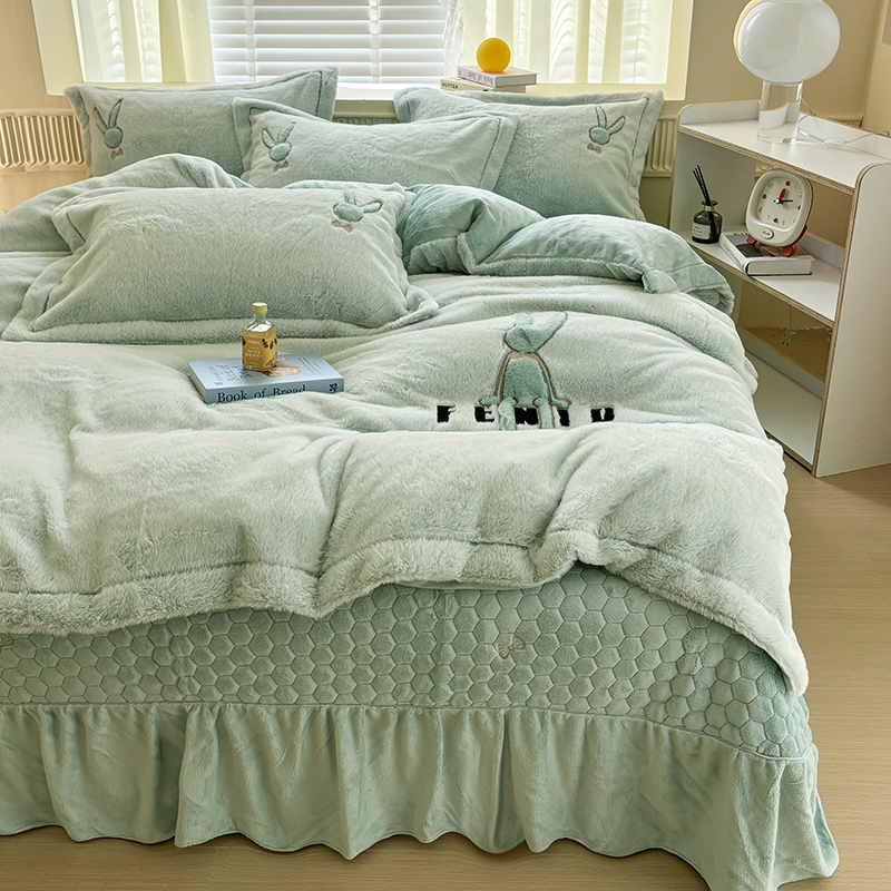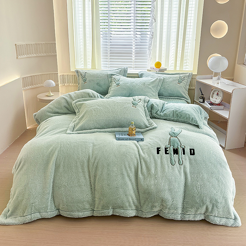 商品名称:新月家纺(锦威郎) 2024新款纯色保暖萌萌兔床盖四件套 萌兔湖蓝色