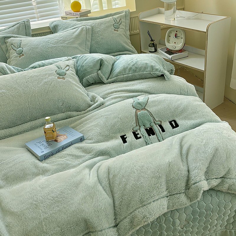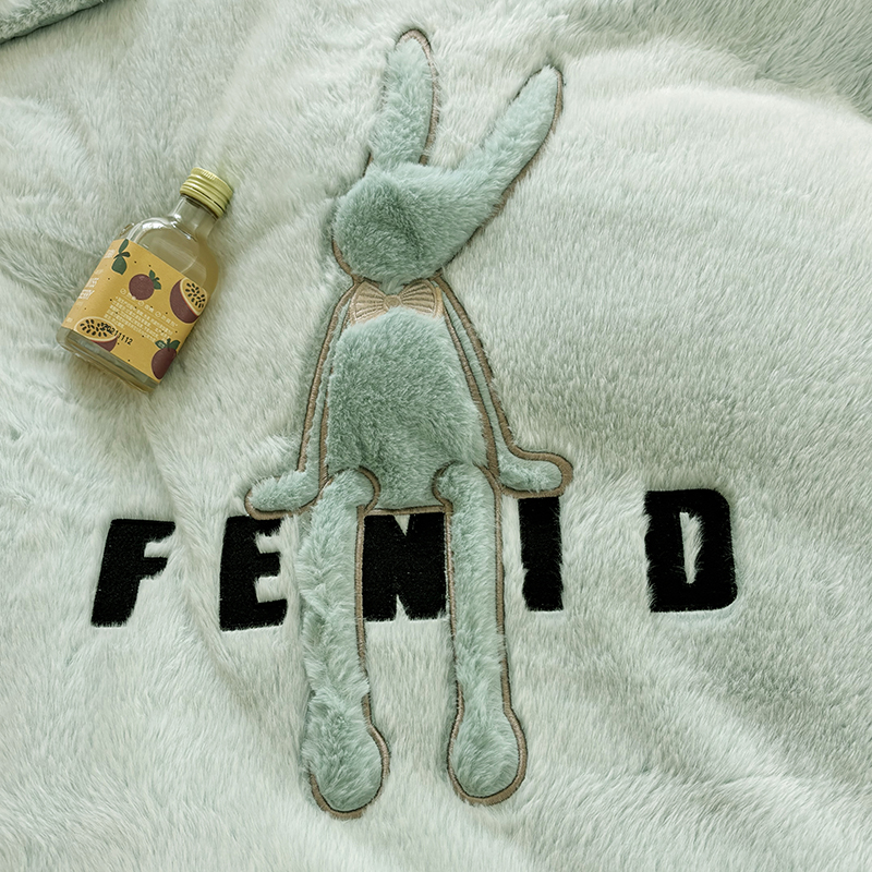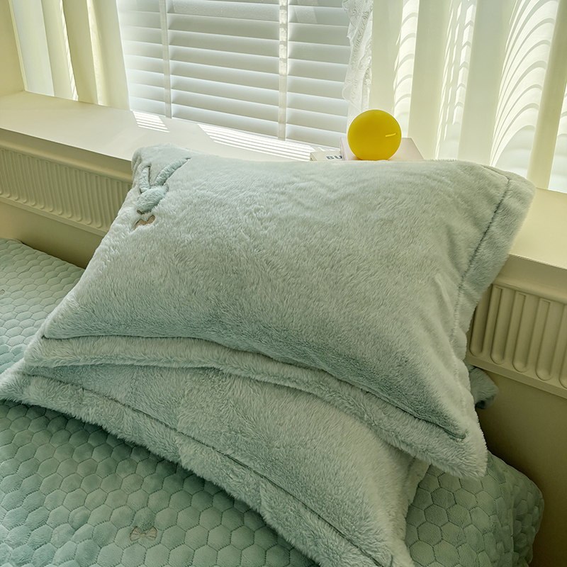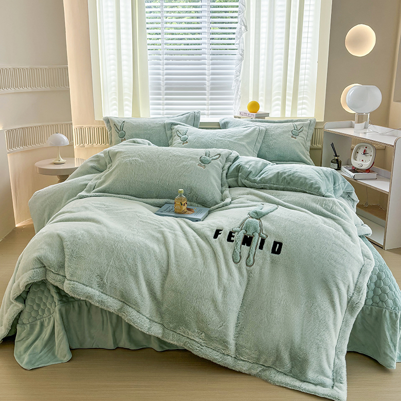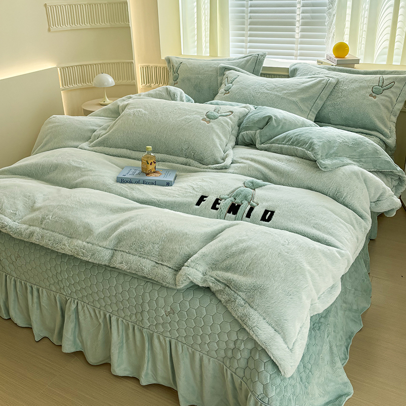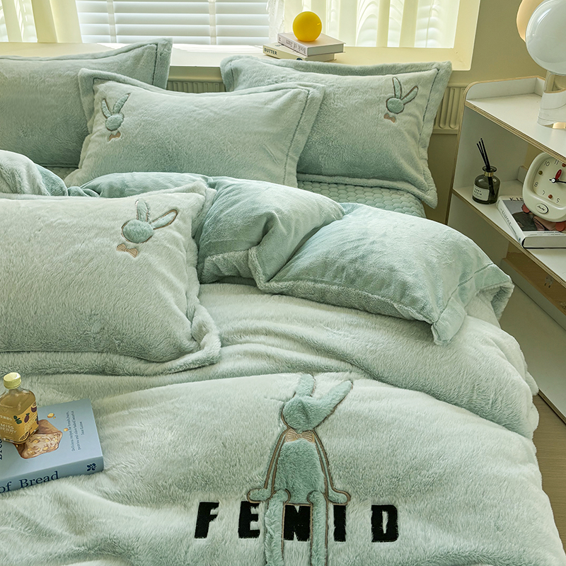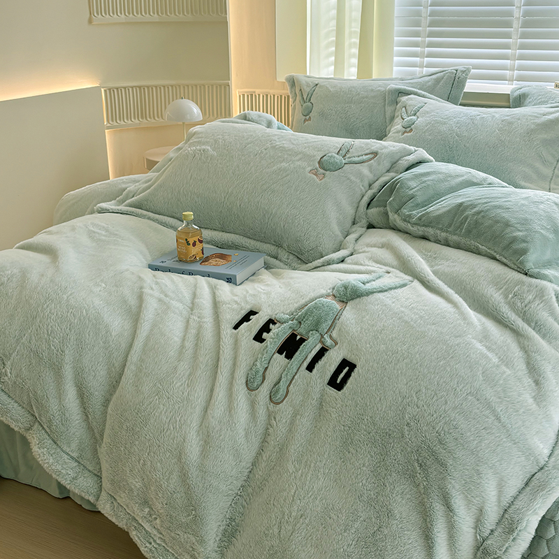 新月家纺(锦威郎) 2024新款纯色保暖萌萌兔床盖四件套 萌兔湖蓝色