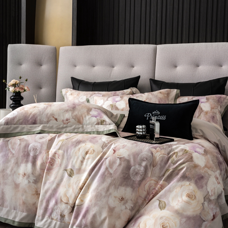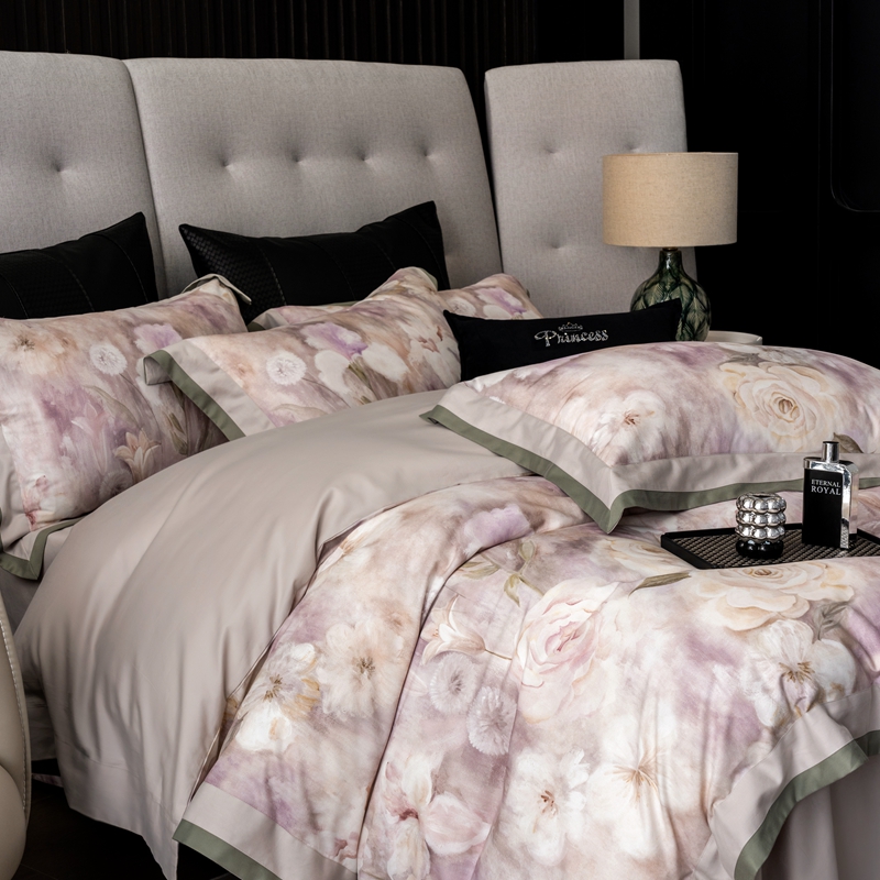 (总)时亿 2023新款100支长绒棉四件套心晴,心晴-粉,心晴-灰,心晴-蓝