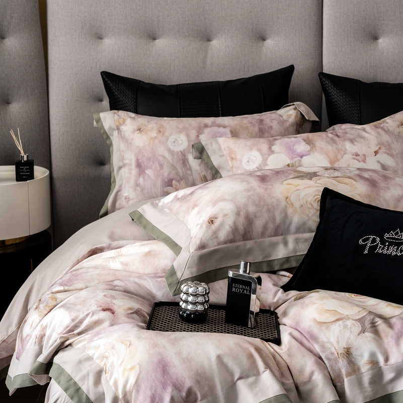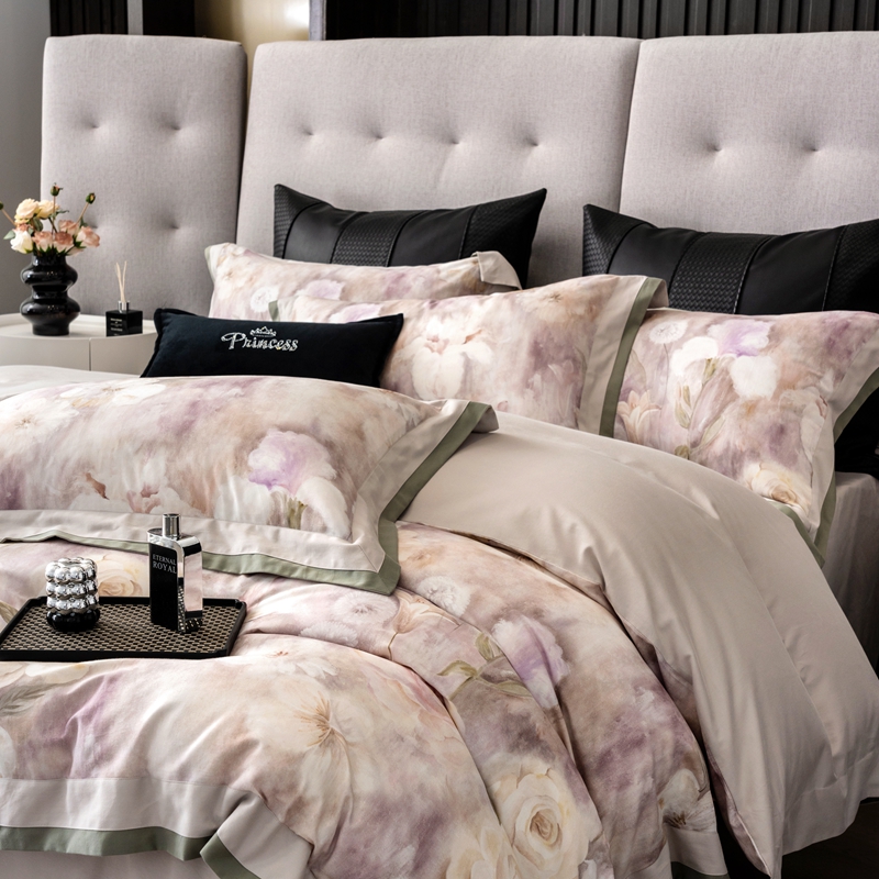 (总)时亿 2023新款100支长绒棉四件套苍兰之约,苍兰之约-橙,苍兰之约-绿