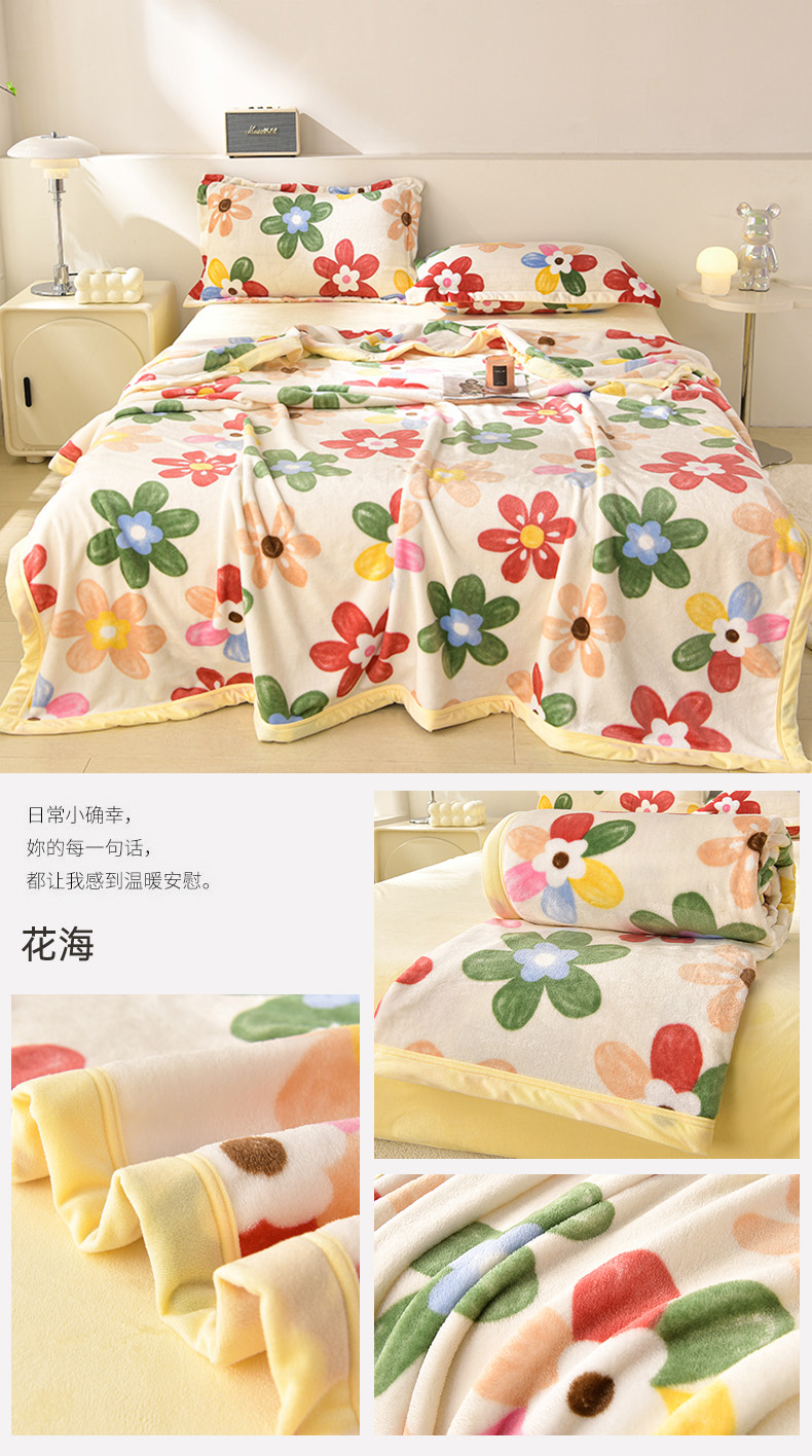 (总)圣楚家纺 2025新款牛奶绒羊羔绒双层毯盖毯毯子,花漾色彩,蓝色天空,迷人花香,邂逅彩虹