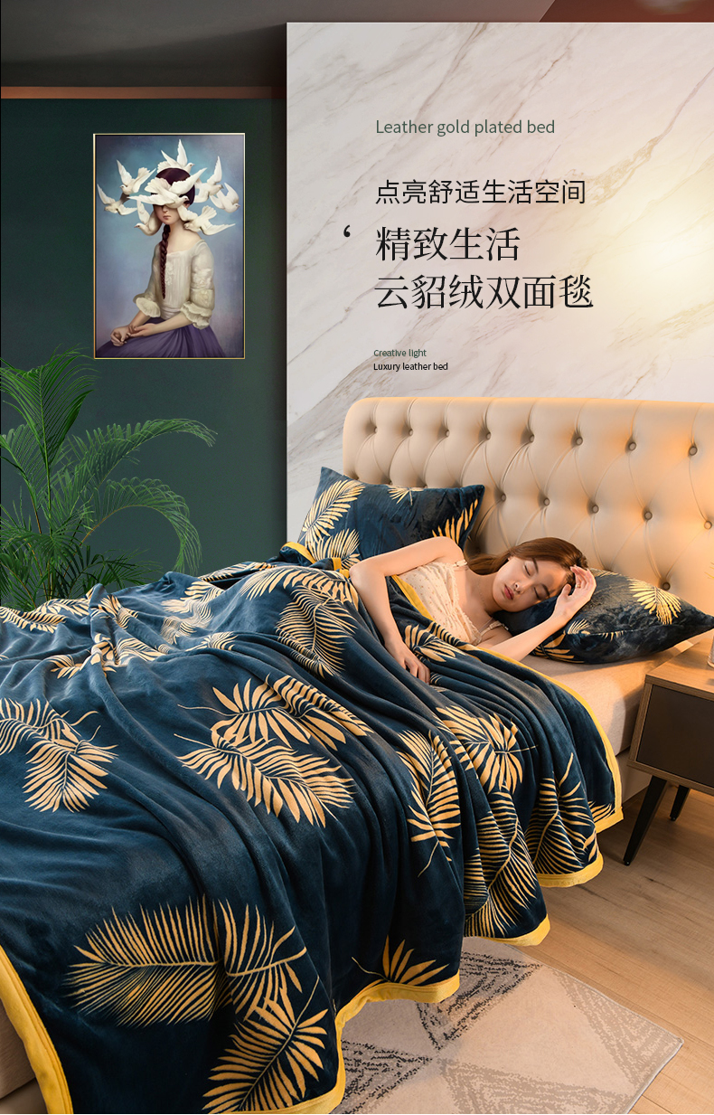(总)圣楚家纺 2025新款塔芙绒叶语双层毯,叶语咖,叶语红,叶语灰,叶语绿