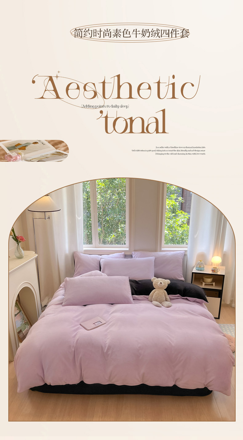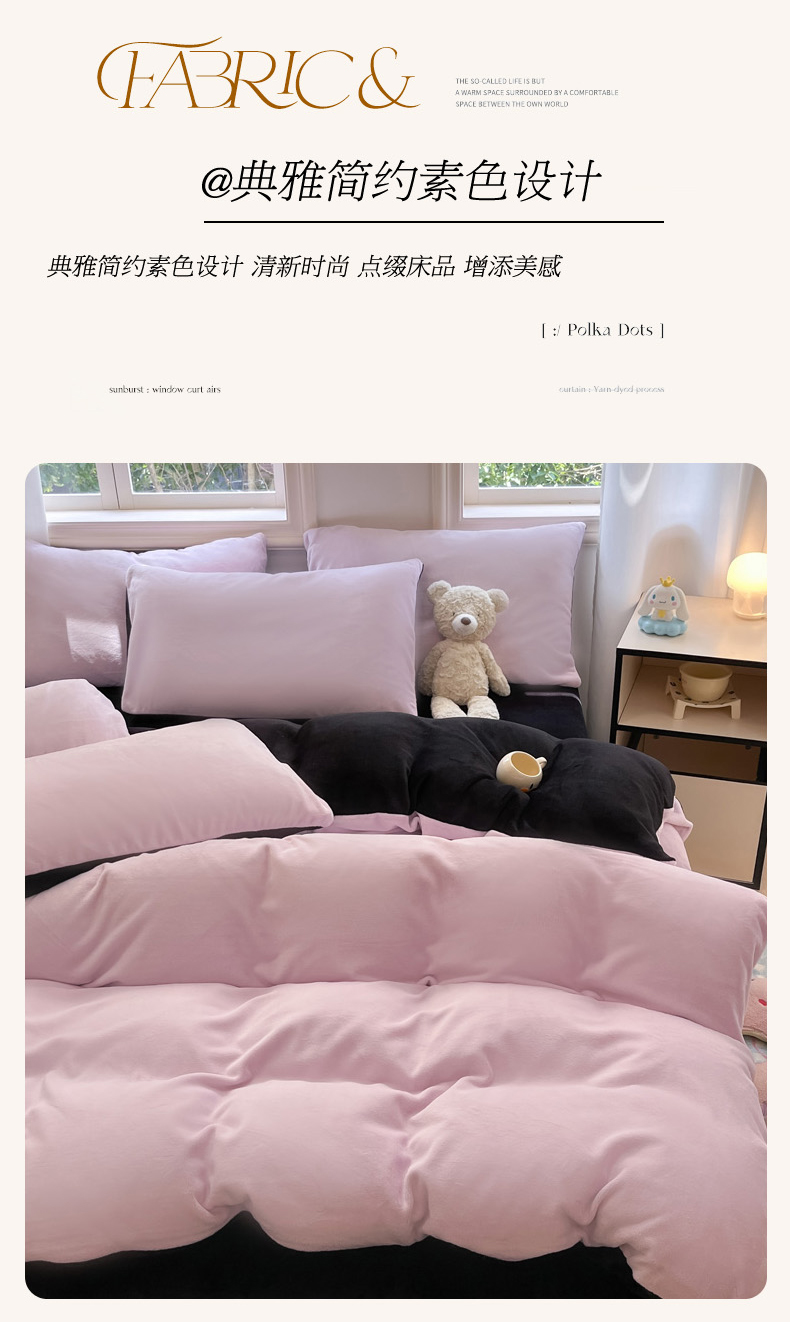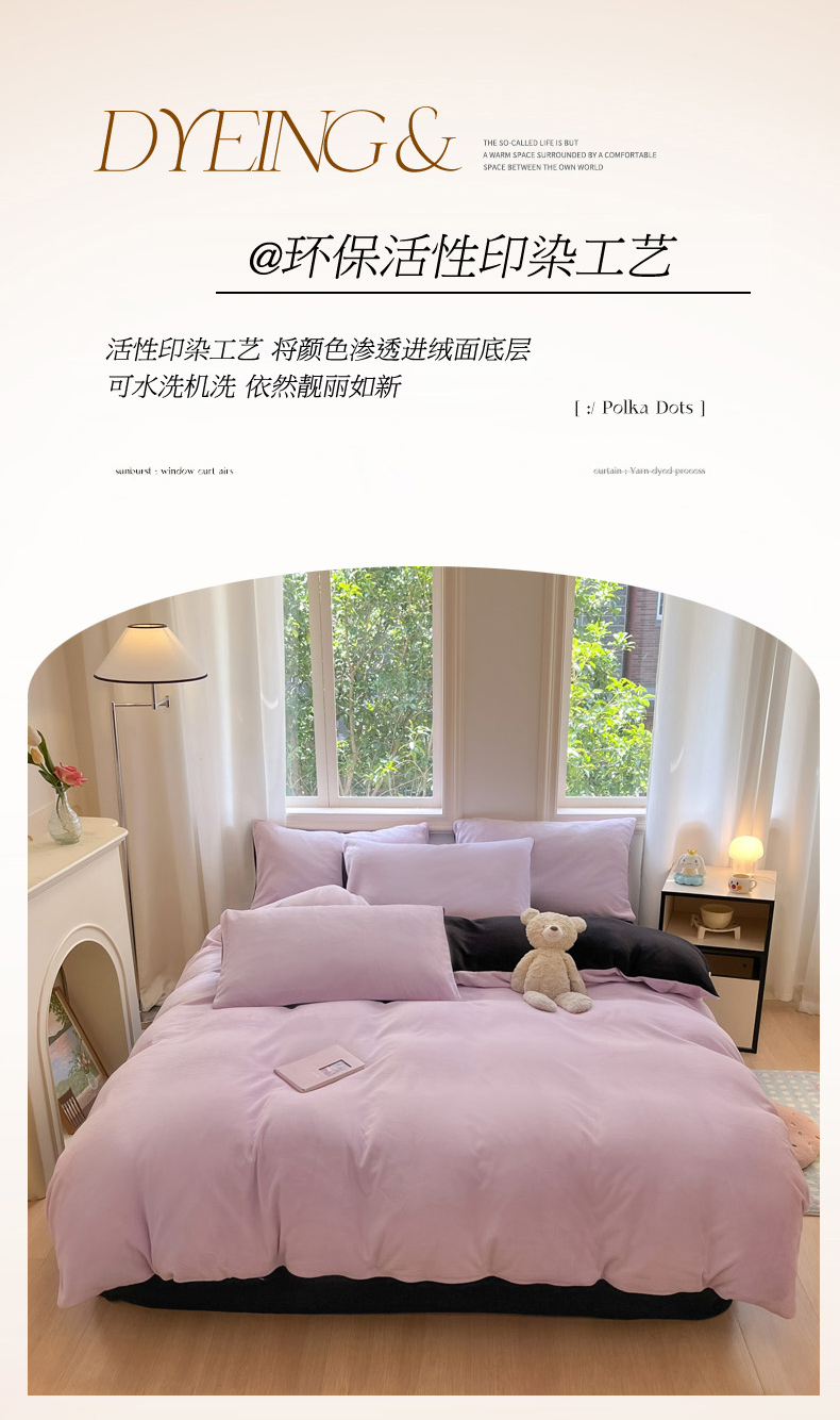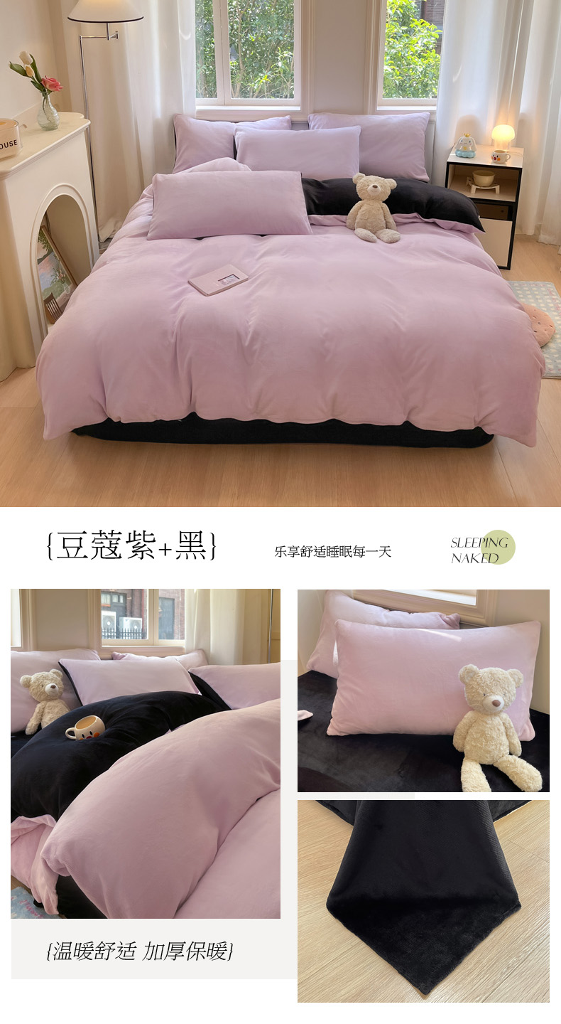 当前位置: 91家纺网 > 商品网购 > 床品套件 > 四件套 > 牛奶绒四件套 > 慕澄家纺 2024新款纯色双拼牛奶绒四件套 豆蔻紫+黑