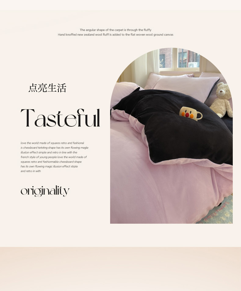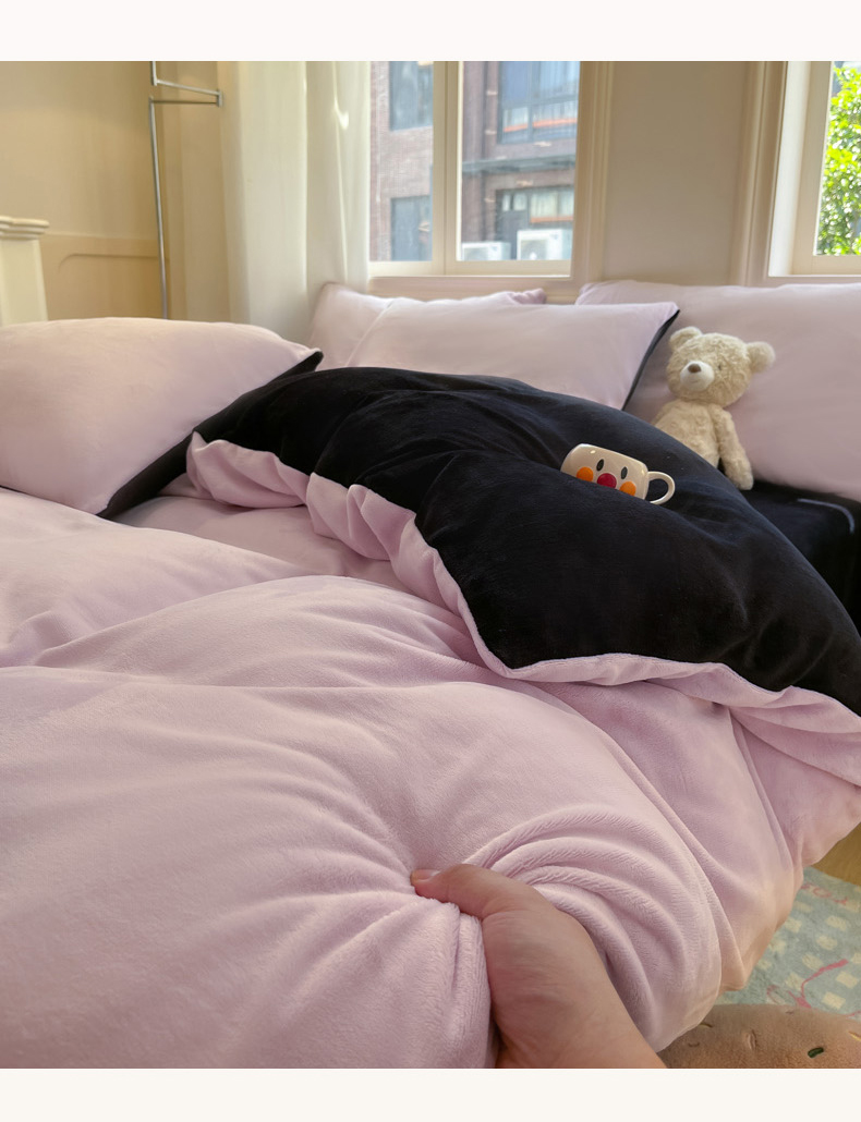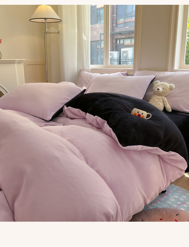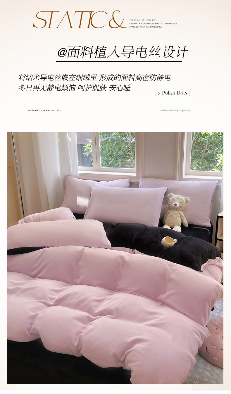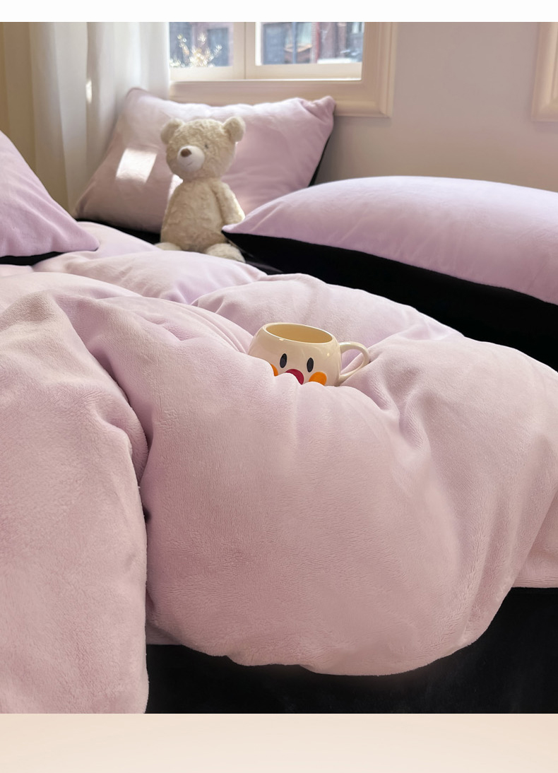 当前位置: 91家纺网 > 商品网购 > 床品套件 > 四件套 > 牛奶绒四件套 > 慕澄家纺 2024新款纯色双拼牛奶绒四件套 豆蔻紫+黑
