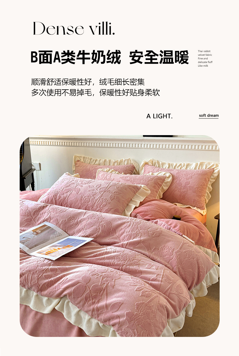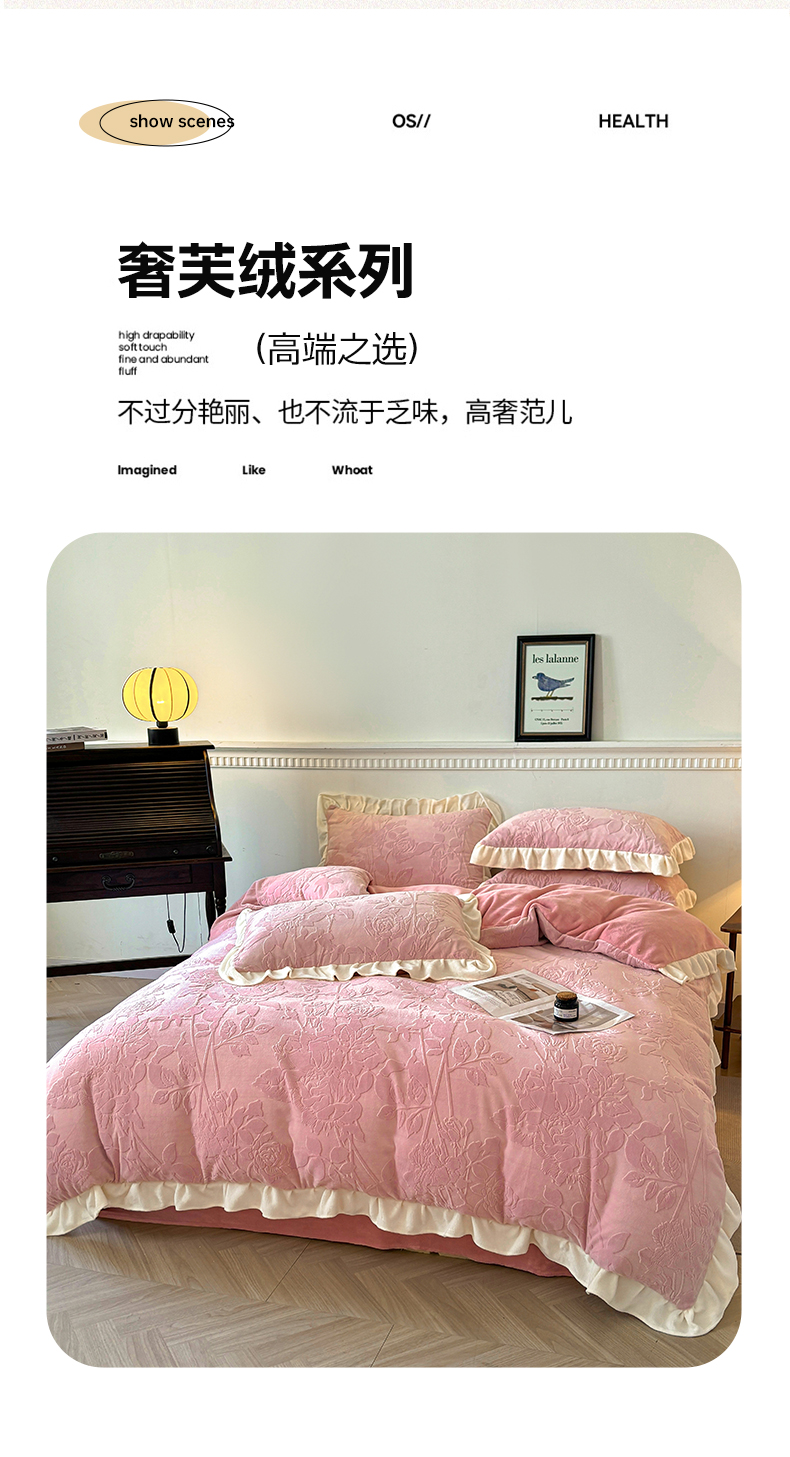 (总)其奥家纺 2025秋冬新款A类230克牛奶绒雕花烂花绒宝宝绒床笠款床单款四件套,蝶恋花语,花恋,浪漫花香 粉,浪漫花香 绿,叶之恋,郁金香粉,月光森林