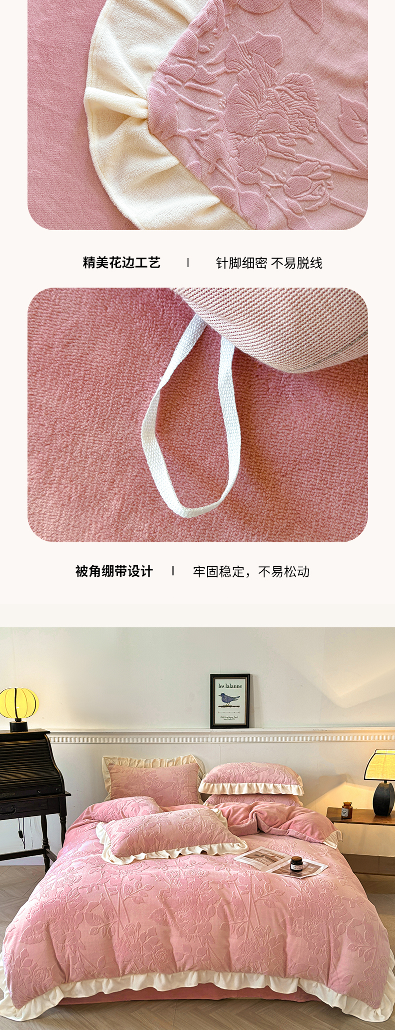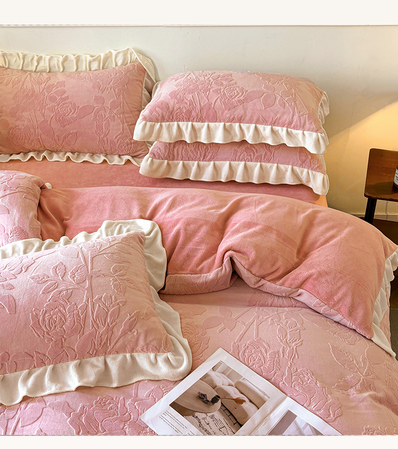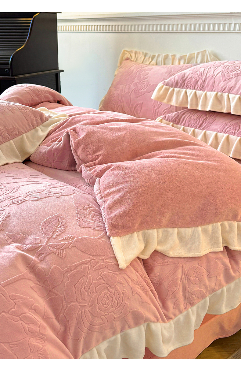商品名称:其奥家纺 2025新款9斤a类230克奢芙绒牛奶绒提花烂花四件套床单款 维也纳-粉