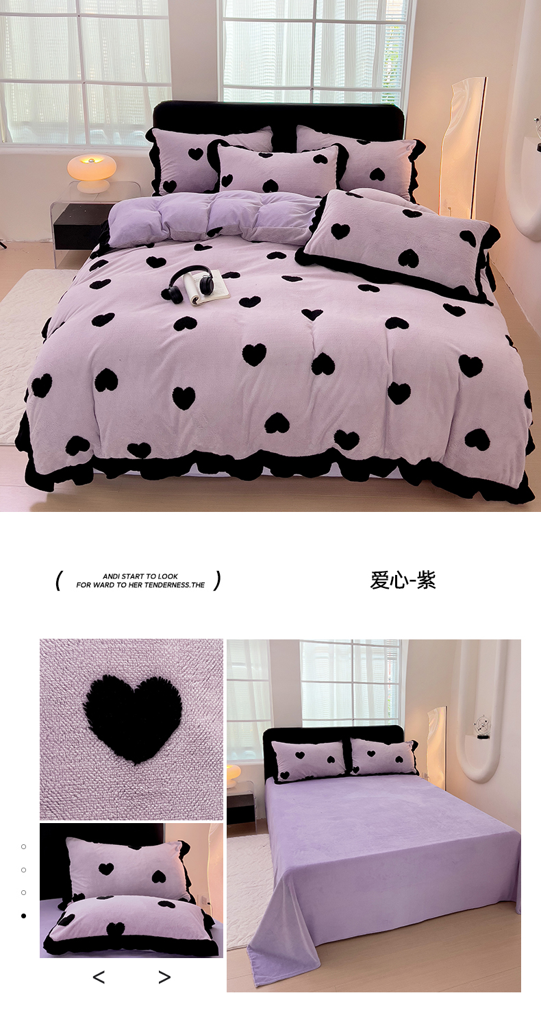 商品名称:米莱家纺 2024新款高克重剪花雕花阳离子牛奶绒四件套 爱心-紫