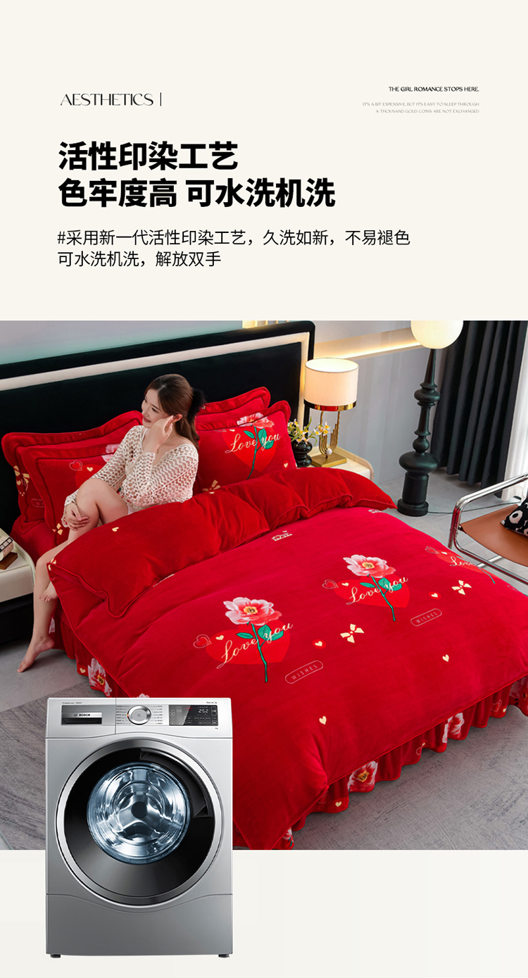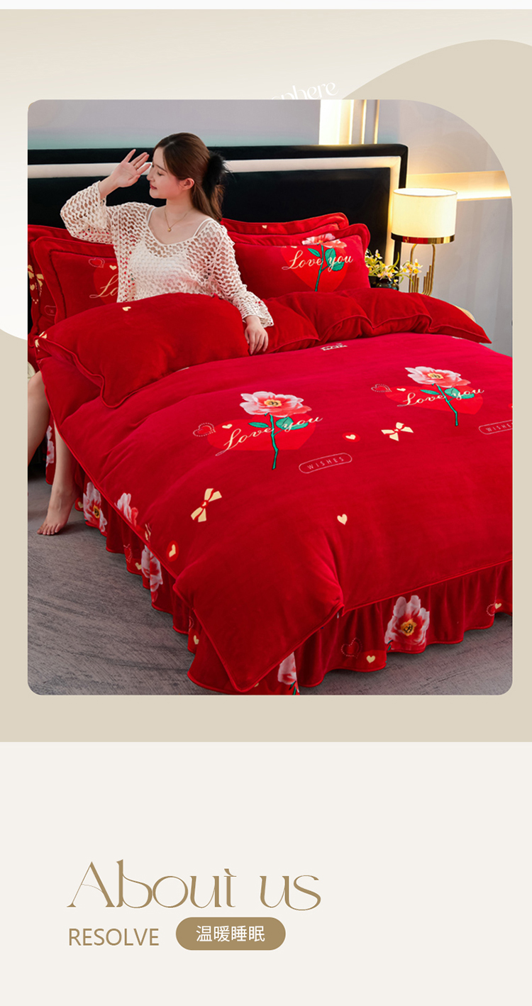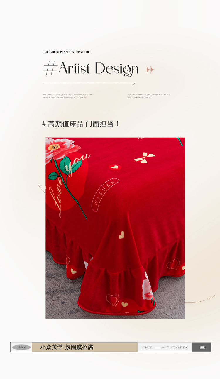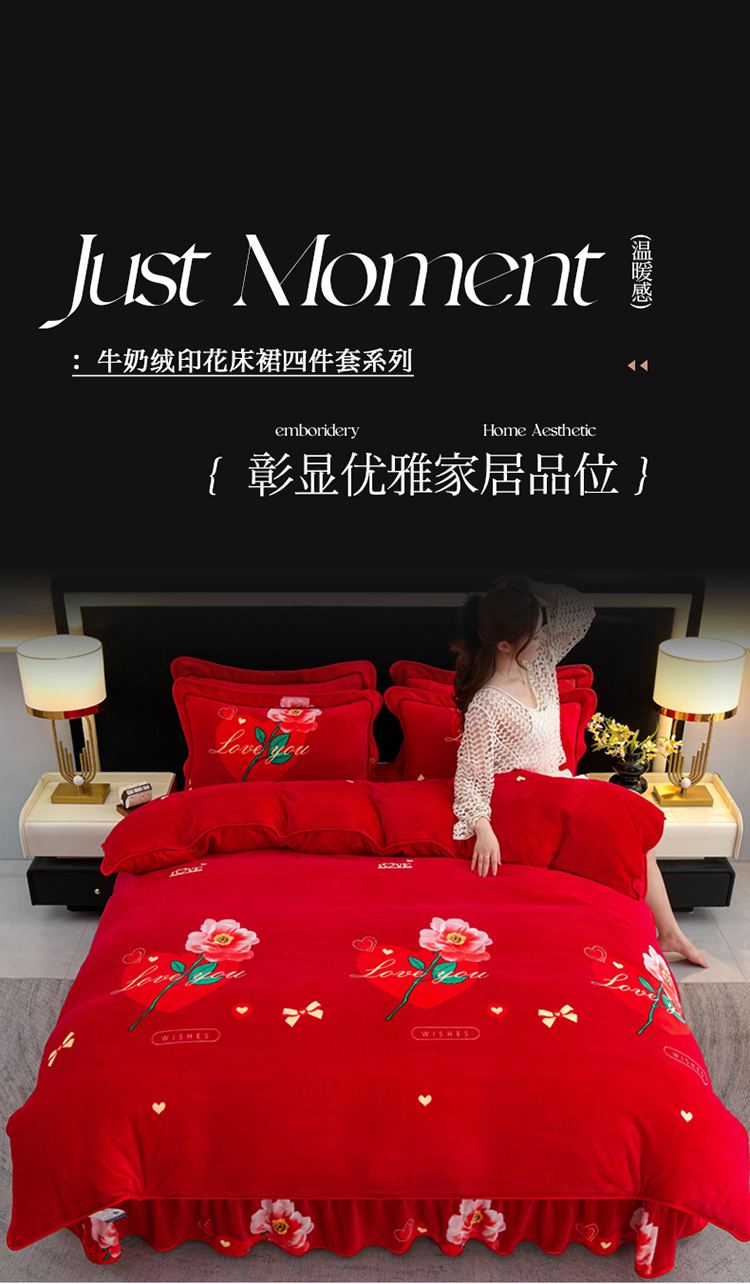 商品名称:2025新款牛奶绒印花床裙四件套系列-四件套 钟爱一生