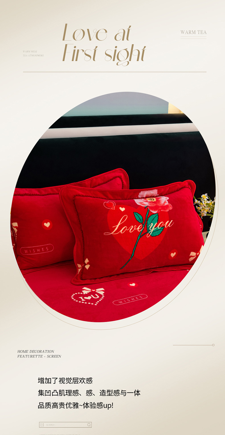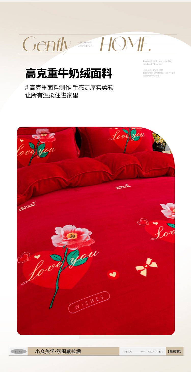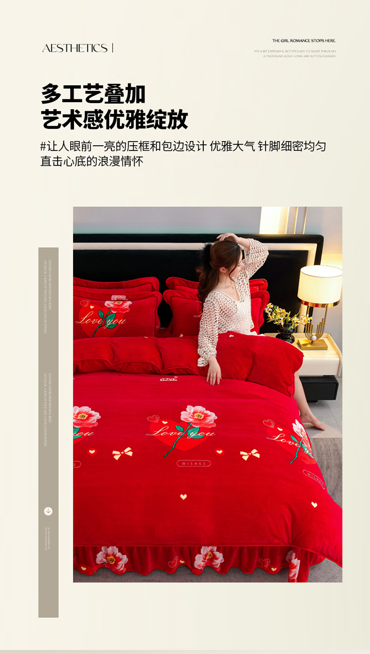 商品名称:2025新款牛奶绒印花床裙四件套系列-四件套 钟爱一生